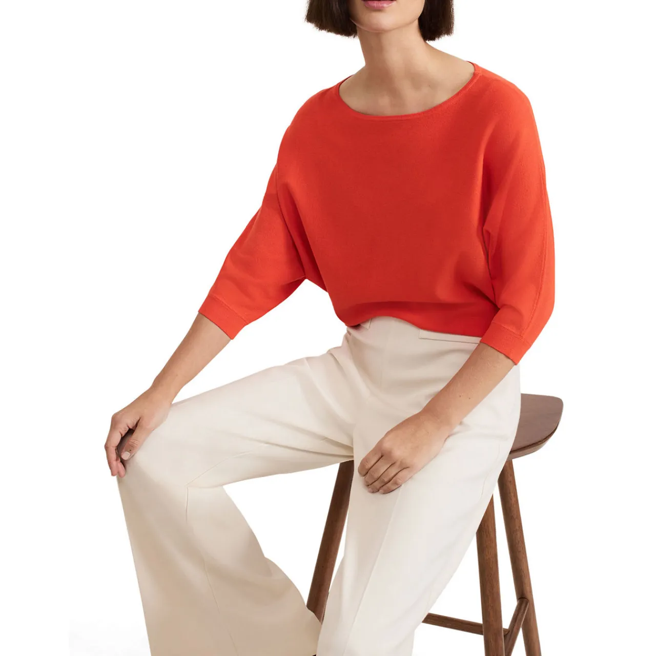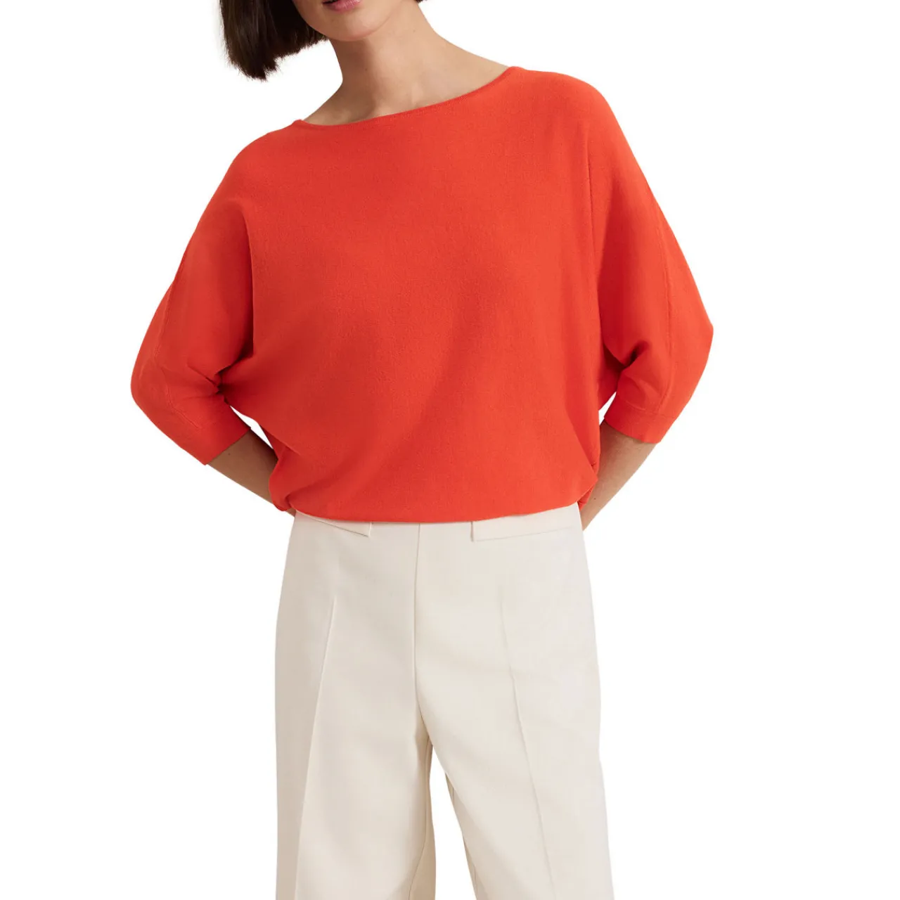- Three-quarter-length batwing sleeves, slash neckline, slip-on style