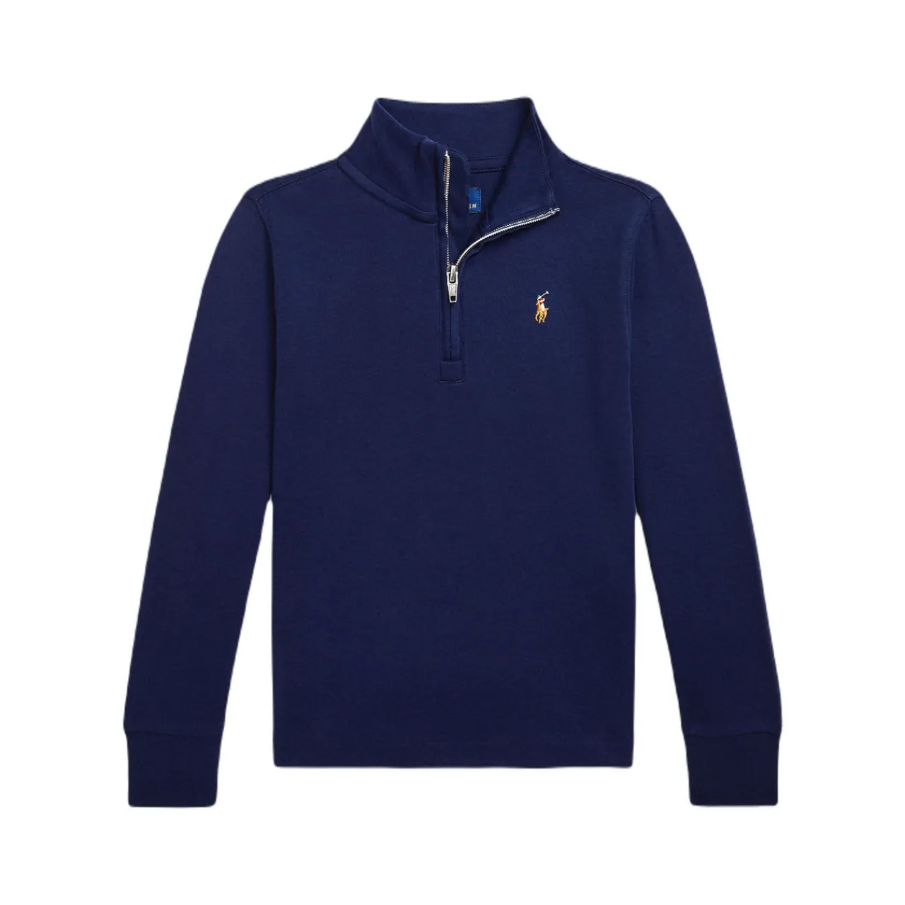 - Quarter-zip placket, long sleeves, cuffs, signature embroidered Pony logo