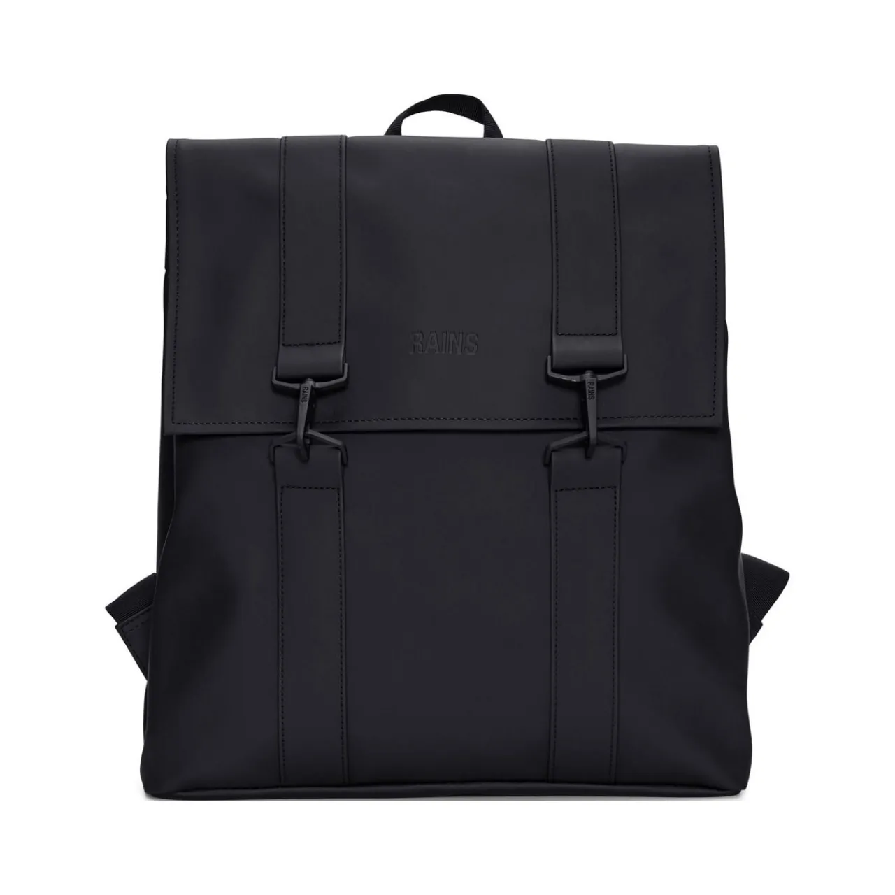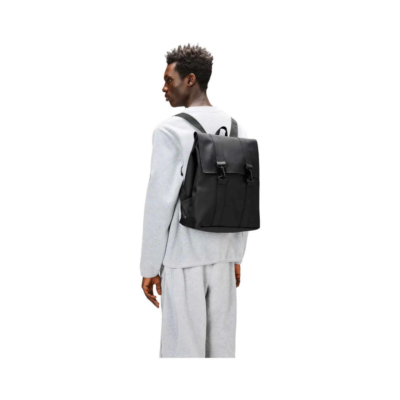 - Waterproof, weather resistant hardware, one main compartment, one laptop pocket, carabiner details, adjustable snap buttons on the sides, adjustable shoulder straps
