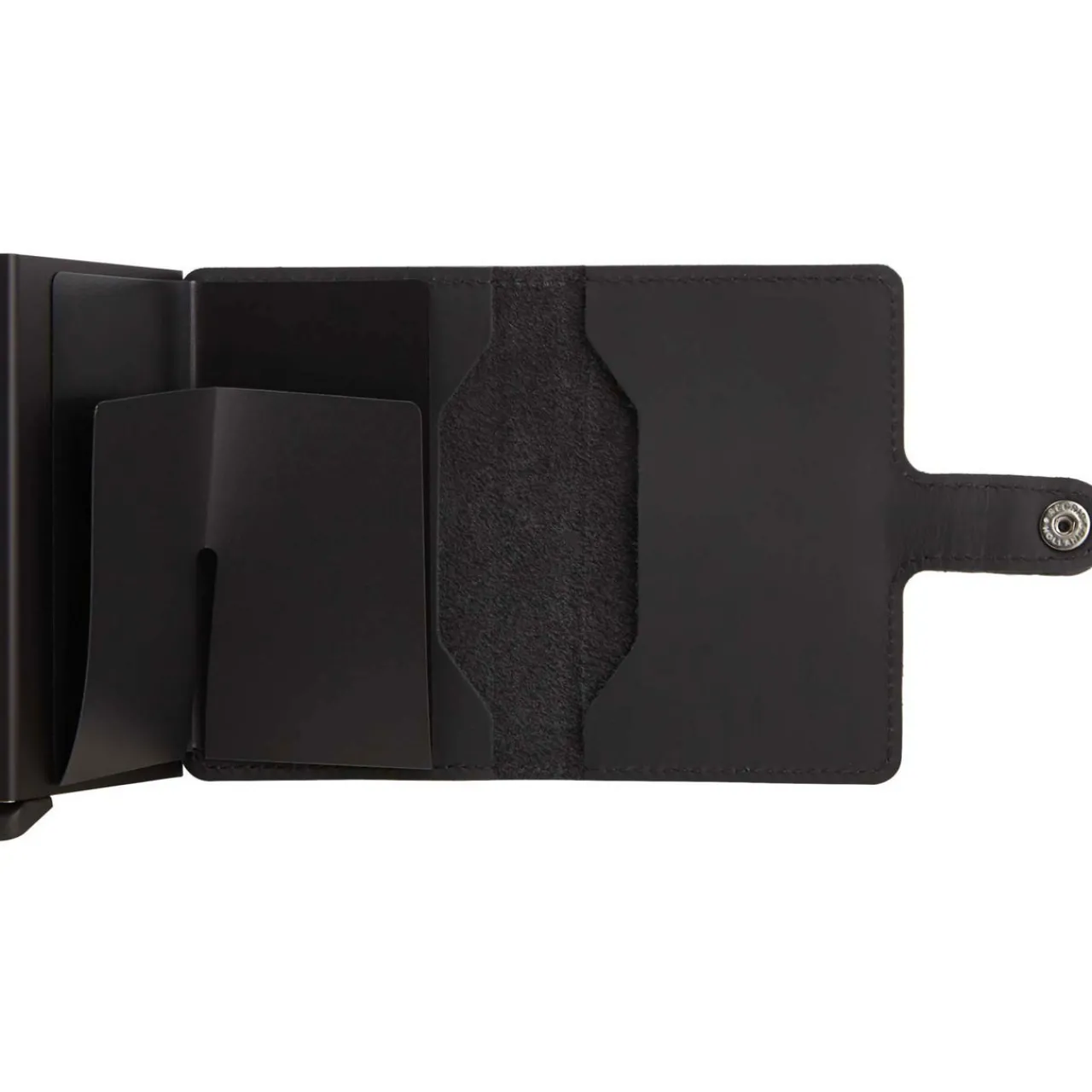 - Cash slot, magnetic clasp closure, two side card slots, aluminium case, slide mechanism