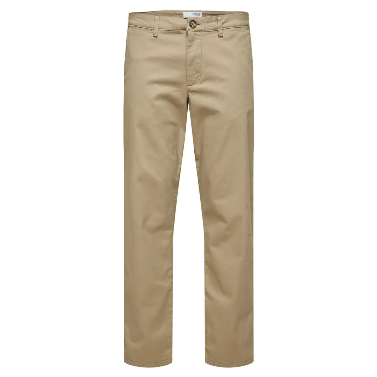 - Regular waist, straight fit, zip and button fastening, back welt pockets, belt loops.