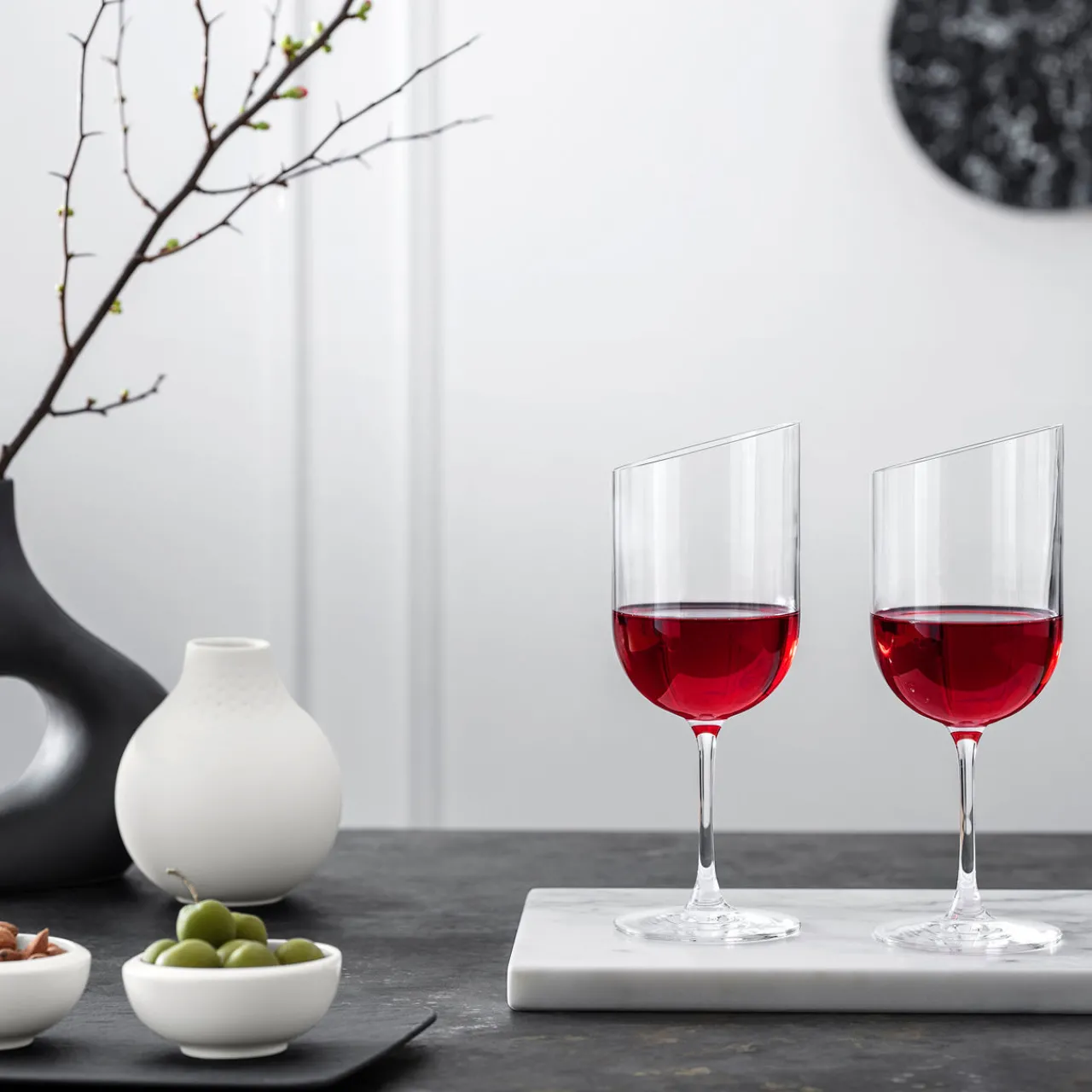 - Asymmetric rim, tactile design, crystal glass, can be used from all sides