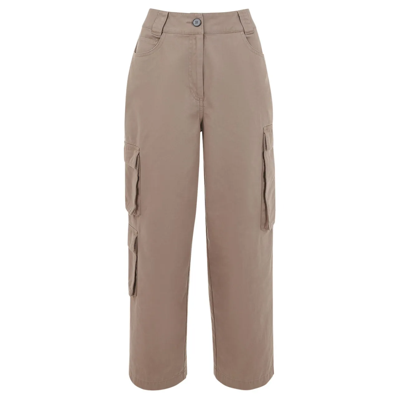- Zip-fly and button fastening, belt loops, side entry pockets, rear flap pockets, cargo flap pockets on each side of leg, tonal stitching, smooth fabric