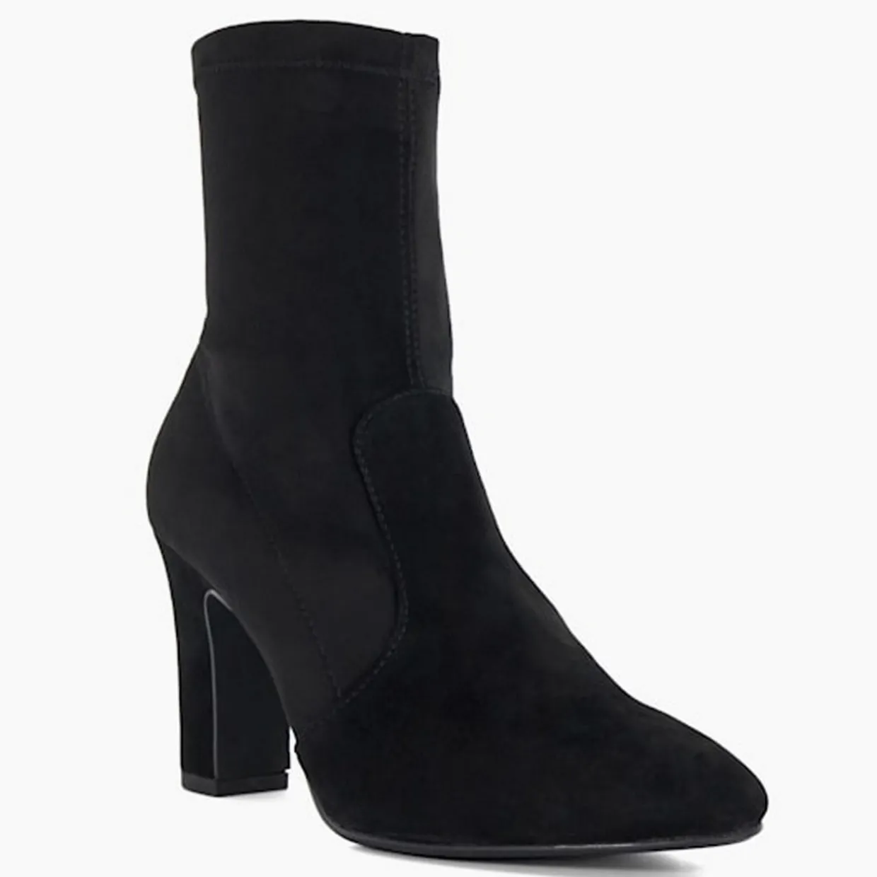 - Almond-shaped toe, block heel, pull-on style