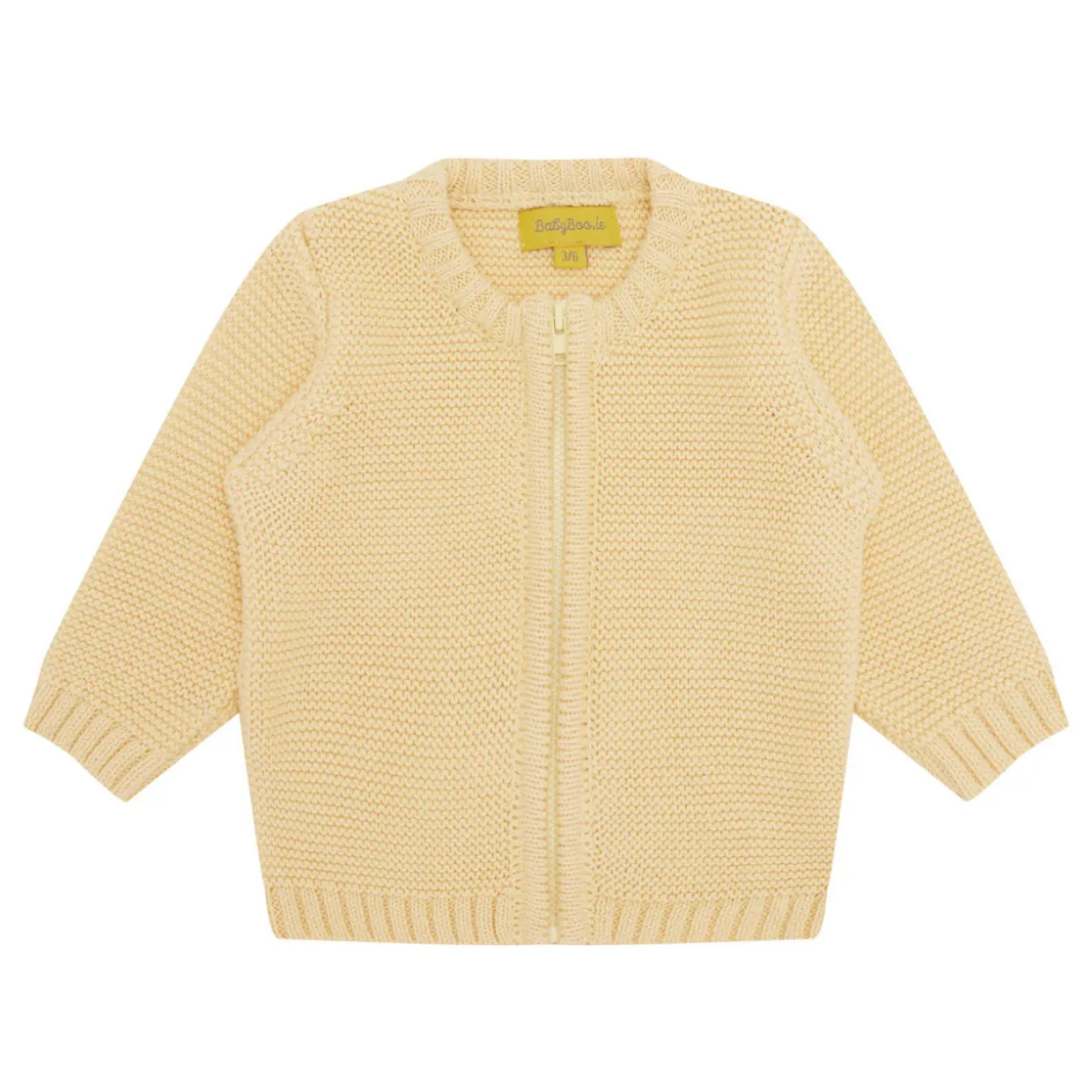 - Round neck, long sleeves, zip-through fastening, knit structure, ribbed trims, GOTS certified 100% organic cotton