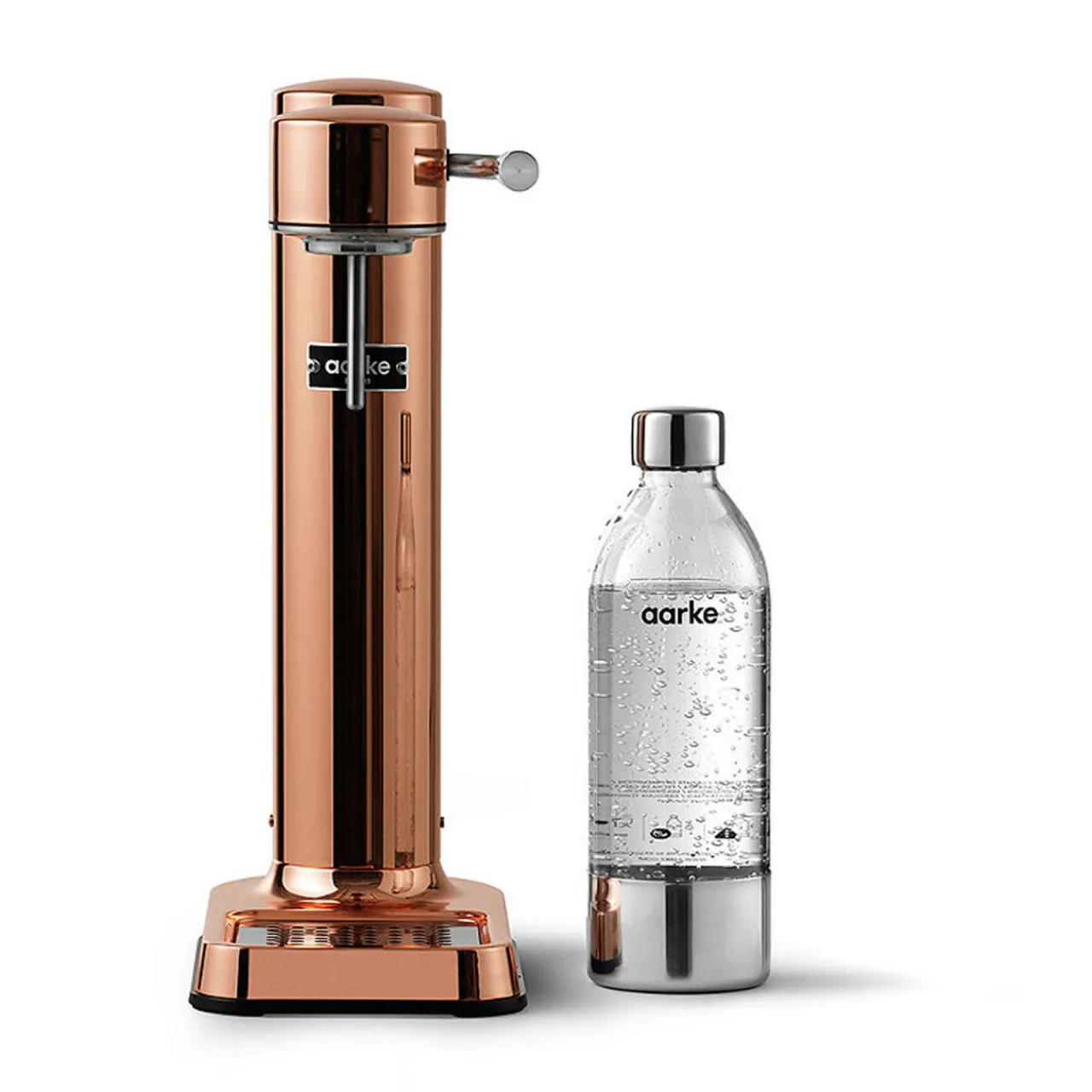 Featuring a sleek and refined shape and a durable screw-in bottom mechanism, the Aarke bottle included with this sparkling water maker seamlessly blends with your countertop or dinner table at home, as well as with your tote bag when you’re out and about.