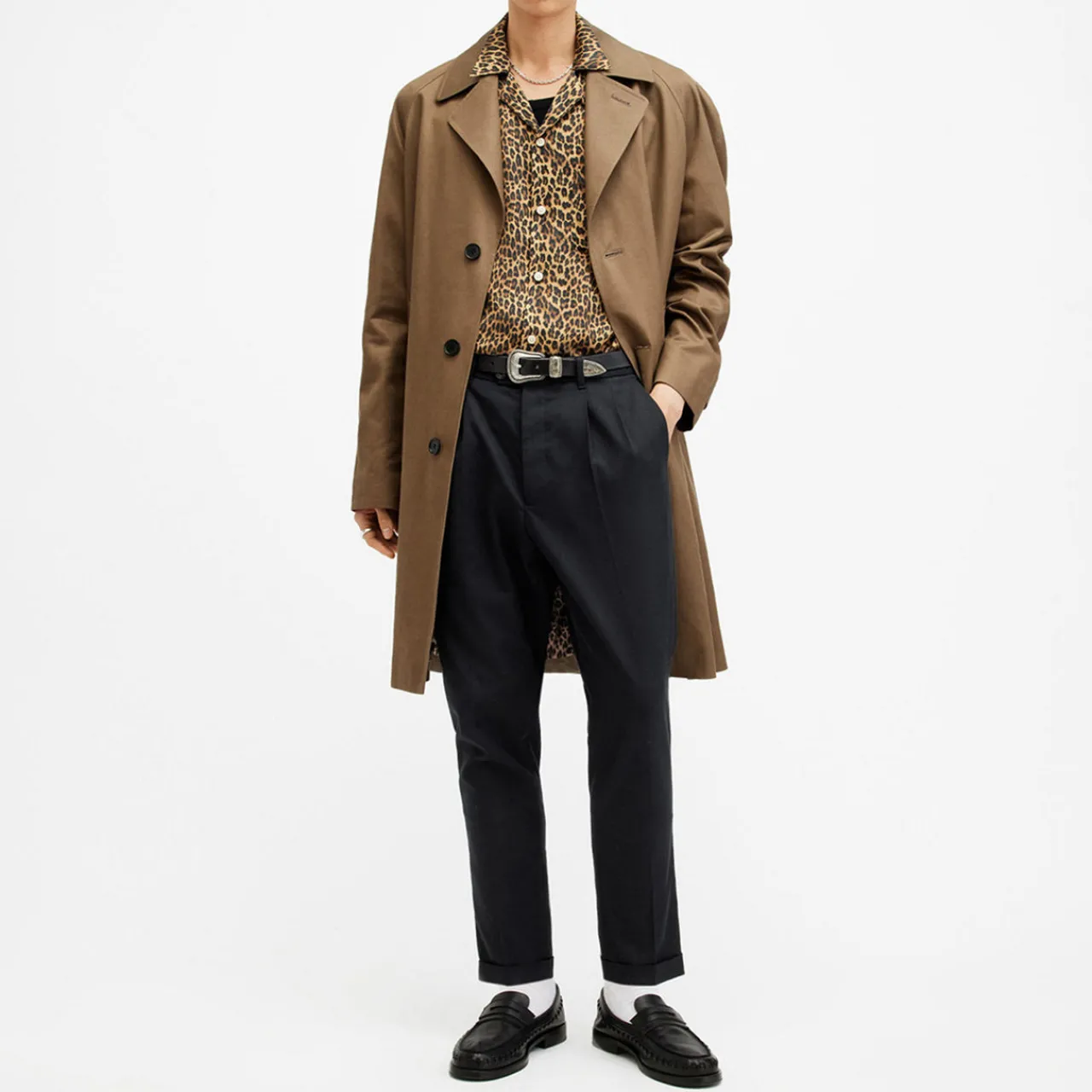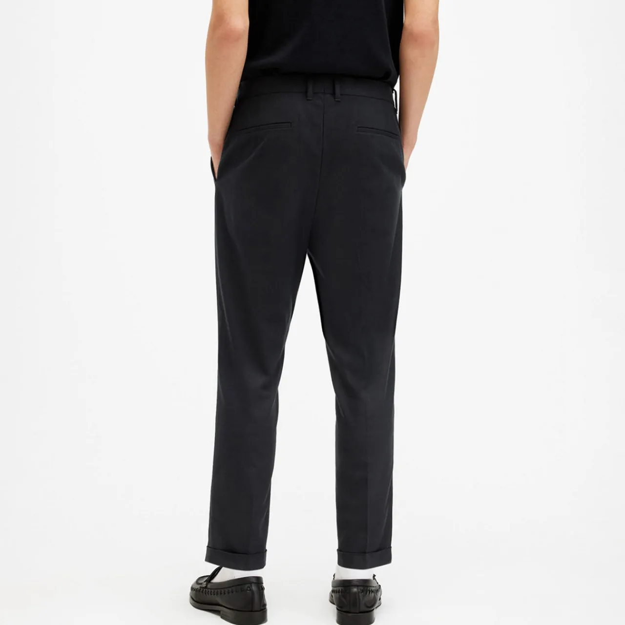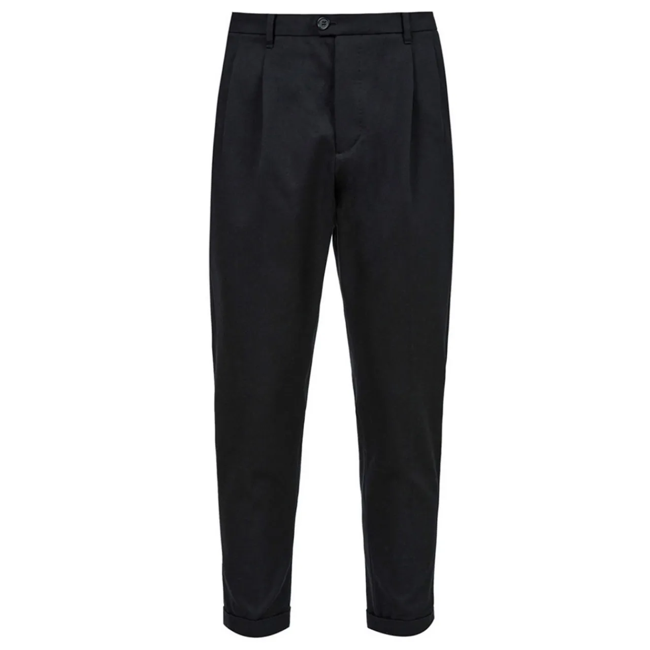 - Tapered-leg, front pleat detail, zip fly with button fastening, belt loops, 4 pockets