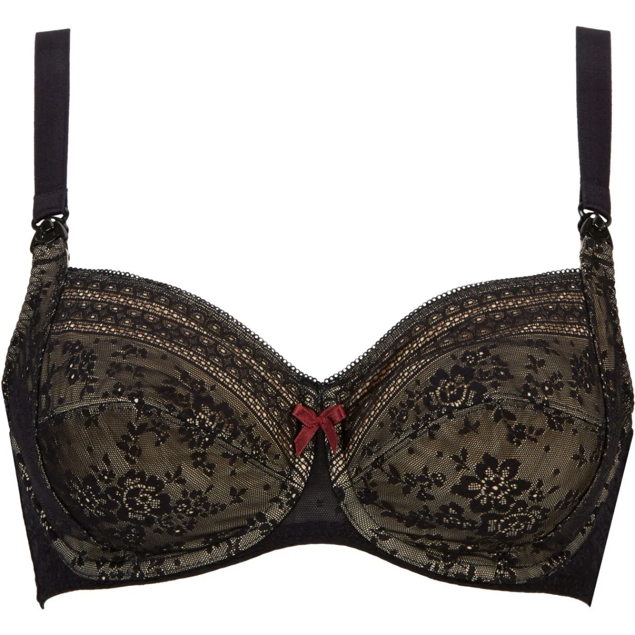 - Nursing bra, Swiss embroidery on cups, microfibre for sensitive skin, light padding, underwired, adjustable straps.
