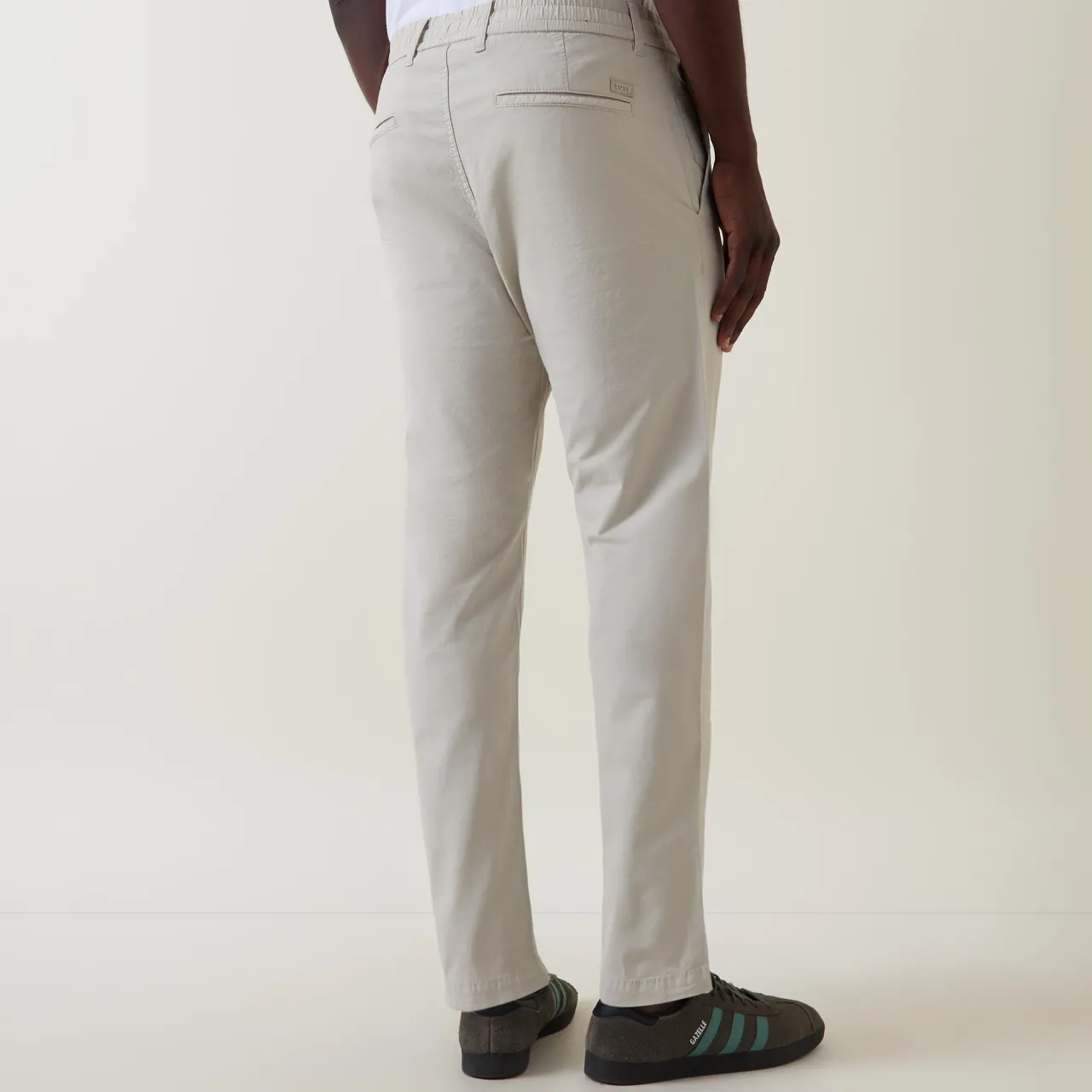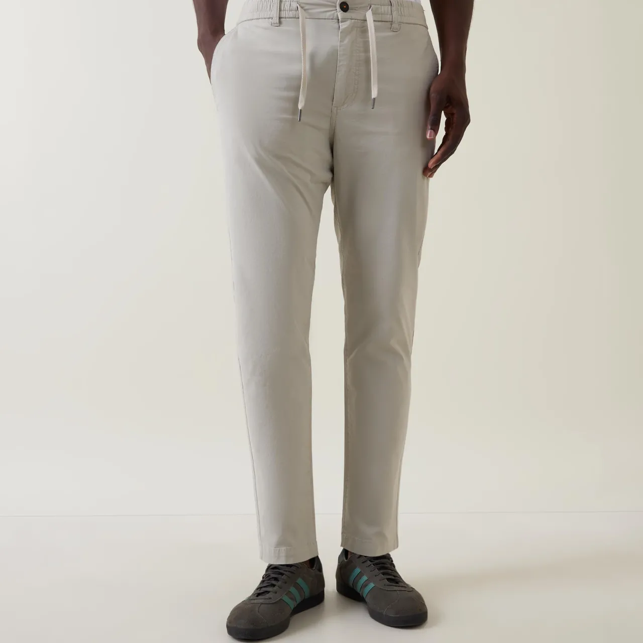 - Button and fly zip fastening, belt loops, elasticated waistband, drawstring adjustable fit, side entry pockets, rear pockets, logo badge
