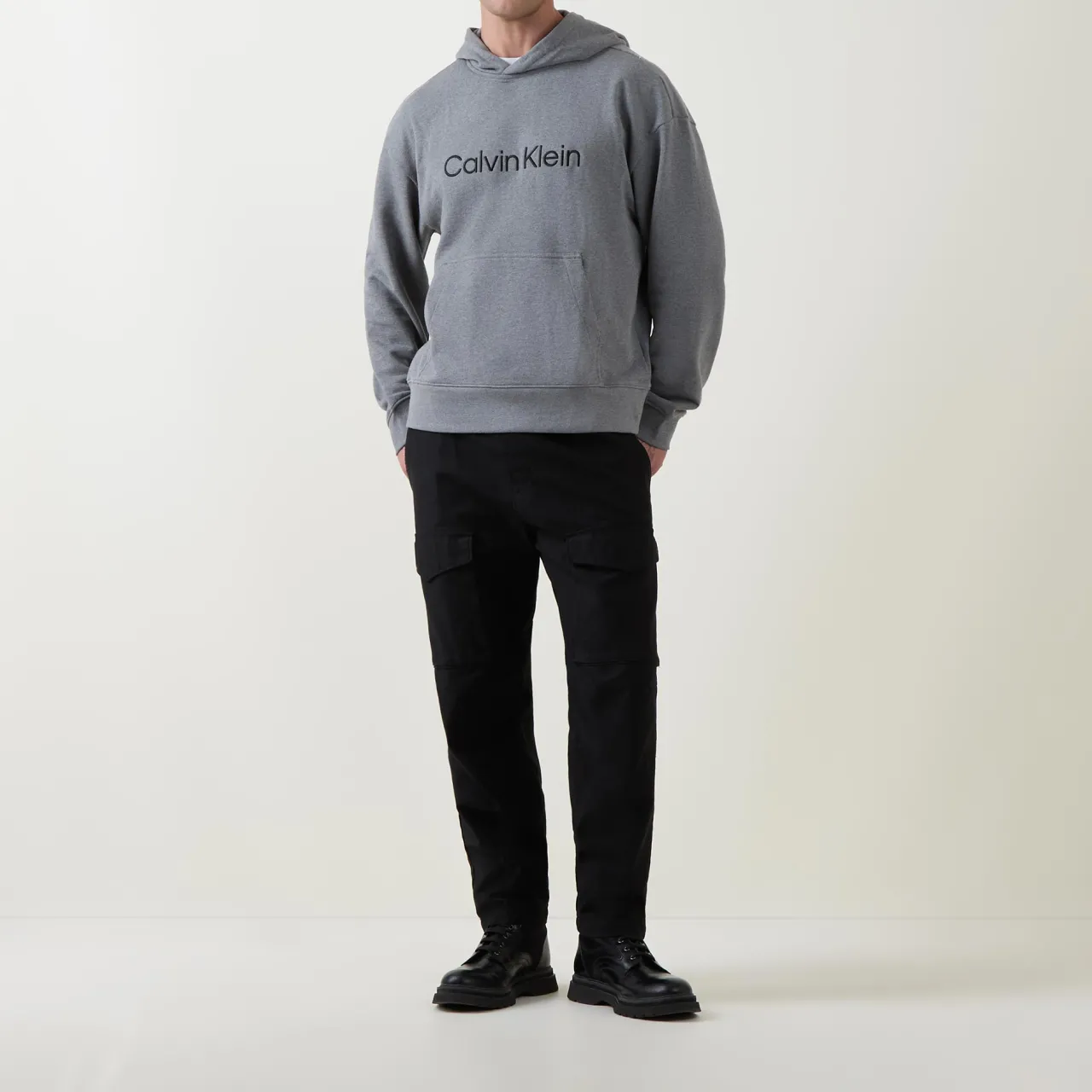 - Long sleeves, hooded, dropped shoulders, contrast logo branding across the chest, front kangaroo pocket, elasticated hemline, stretch cuffs, smooth fabric