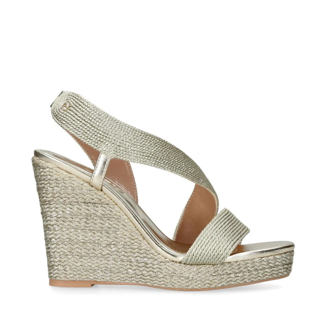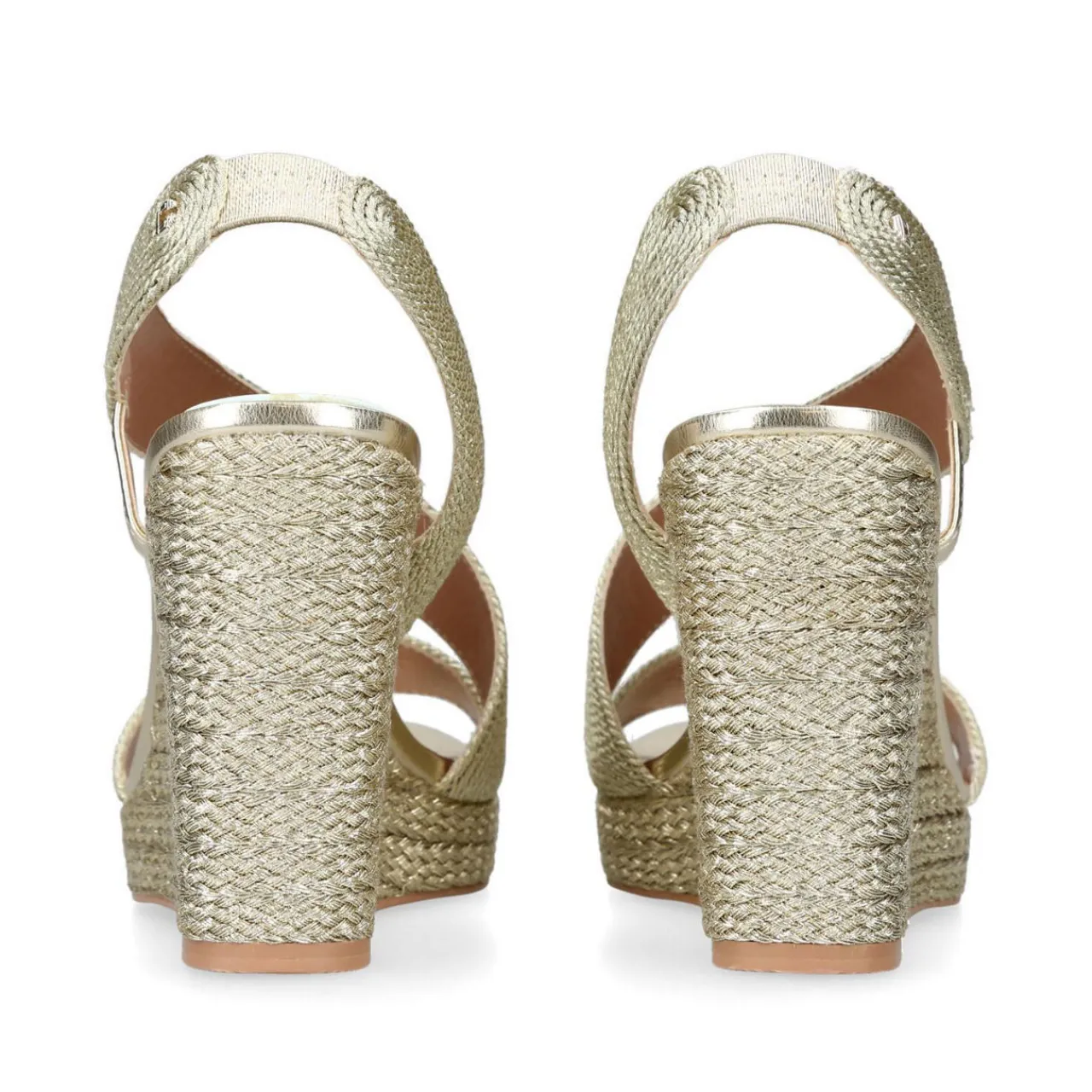 - Curved micro rope effect, icon C stud on the outer side, wedge heel in an espadrille style, open toe