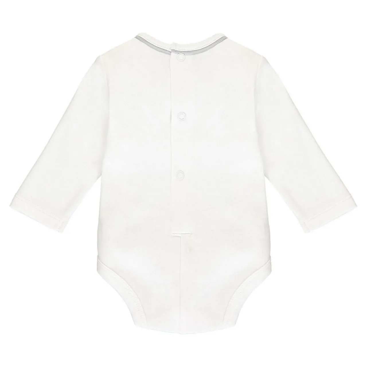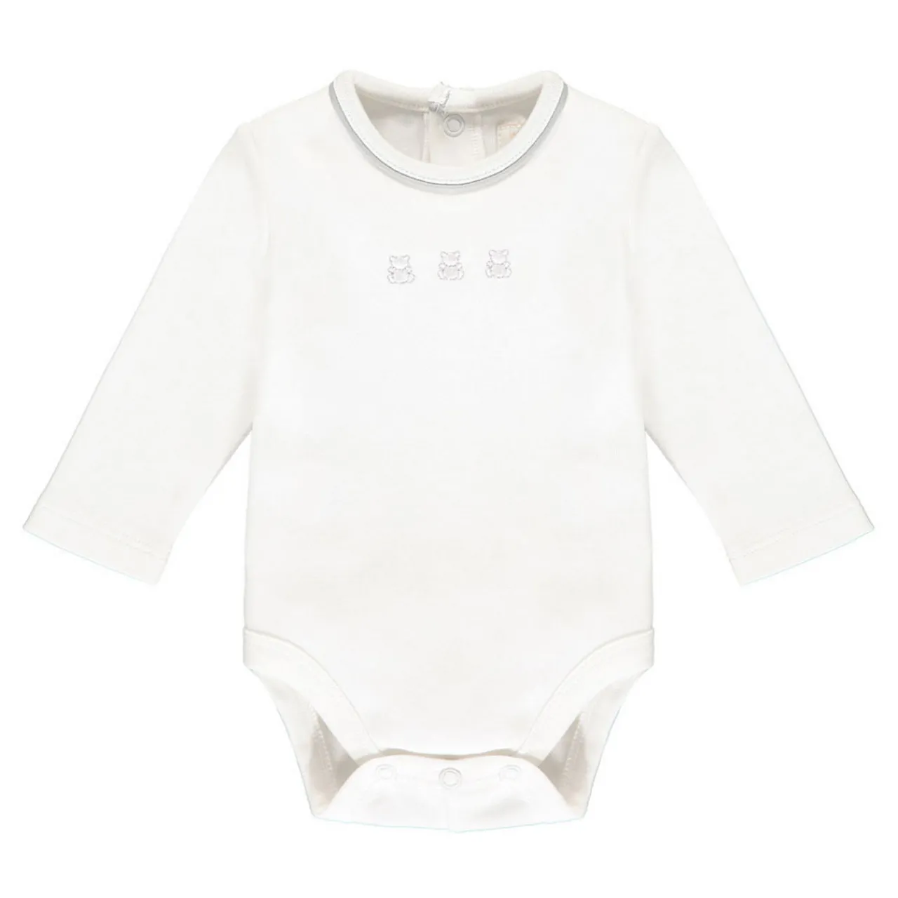 - Set includes: 1 x long sleeve bodysuit, 1 x footsie babygrow, 1 x teddy bear. Presented in gift box.