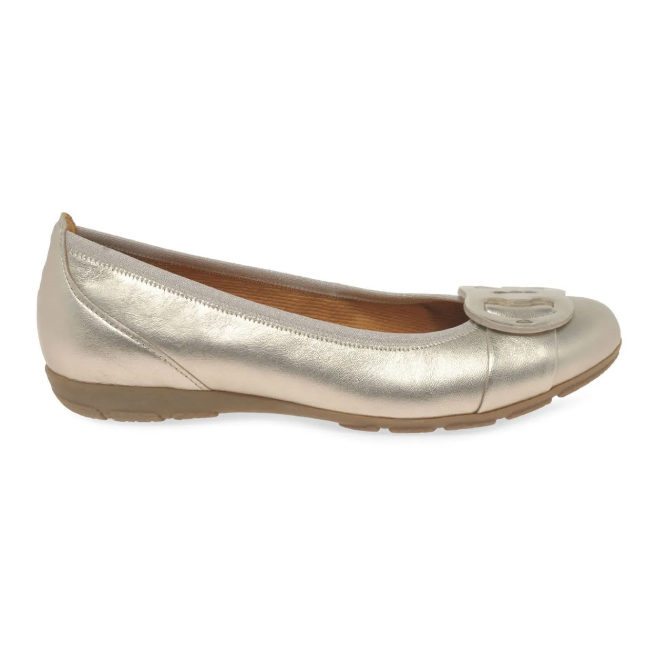 - Slip-on style, ballet flat silhouette, ‘Hovercraft’ technology for extra comfort, tonal buckle detail, round toe