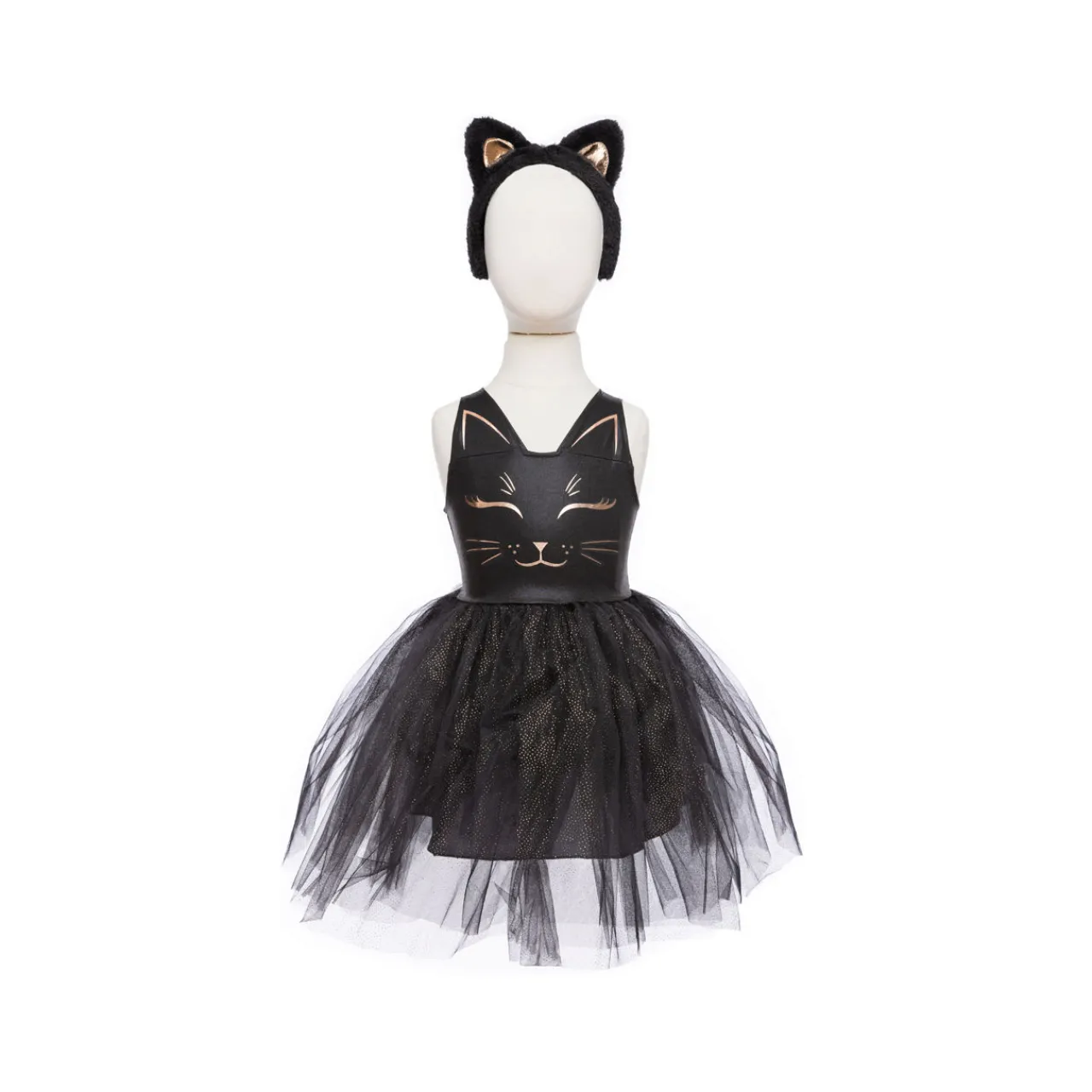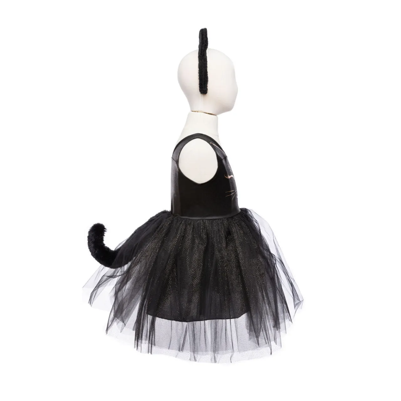 - Dress with printed cat face, shimmering details, skirt with heat-sealed sparkles, furry cat tail, headband with furry stand-up cat ears, soft texture