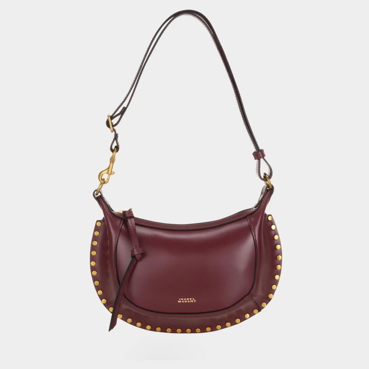 - Moon silhouette, studded detail, detachable and adjustable strap, two internal compartments, central zipped compartment with knotted pull tab