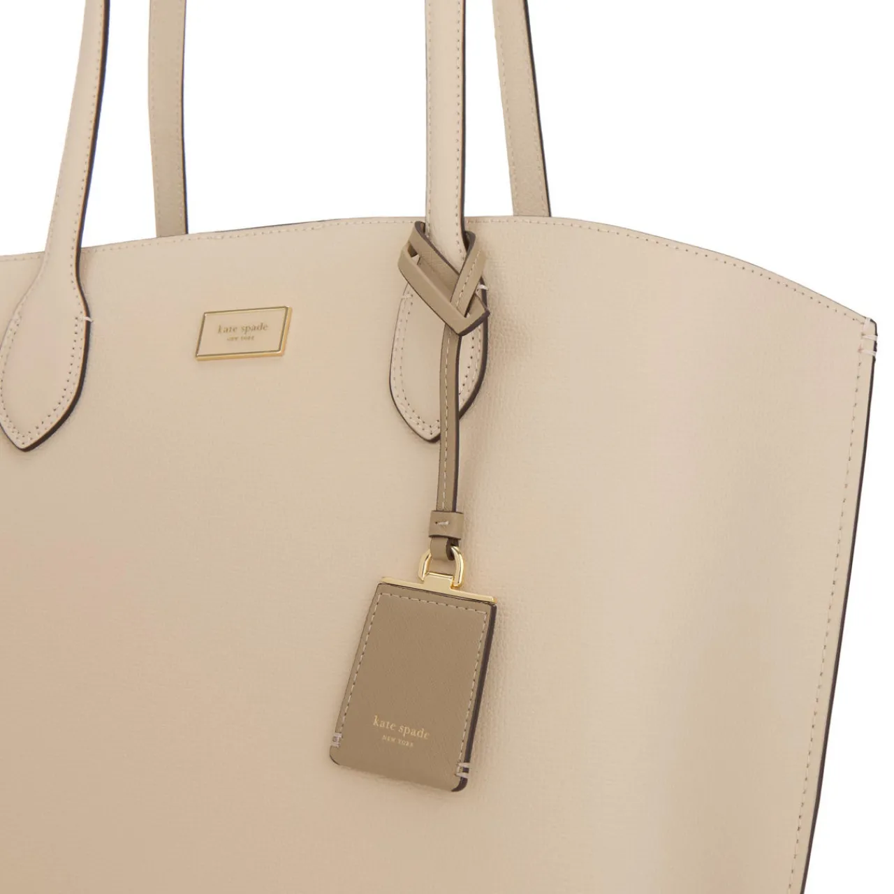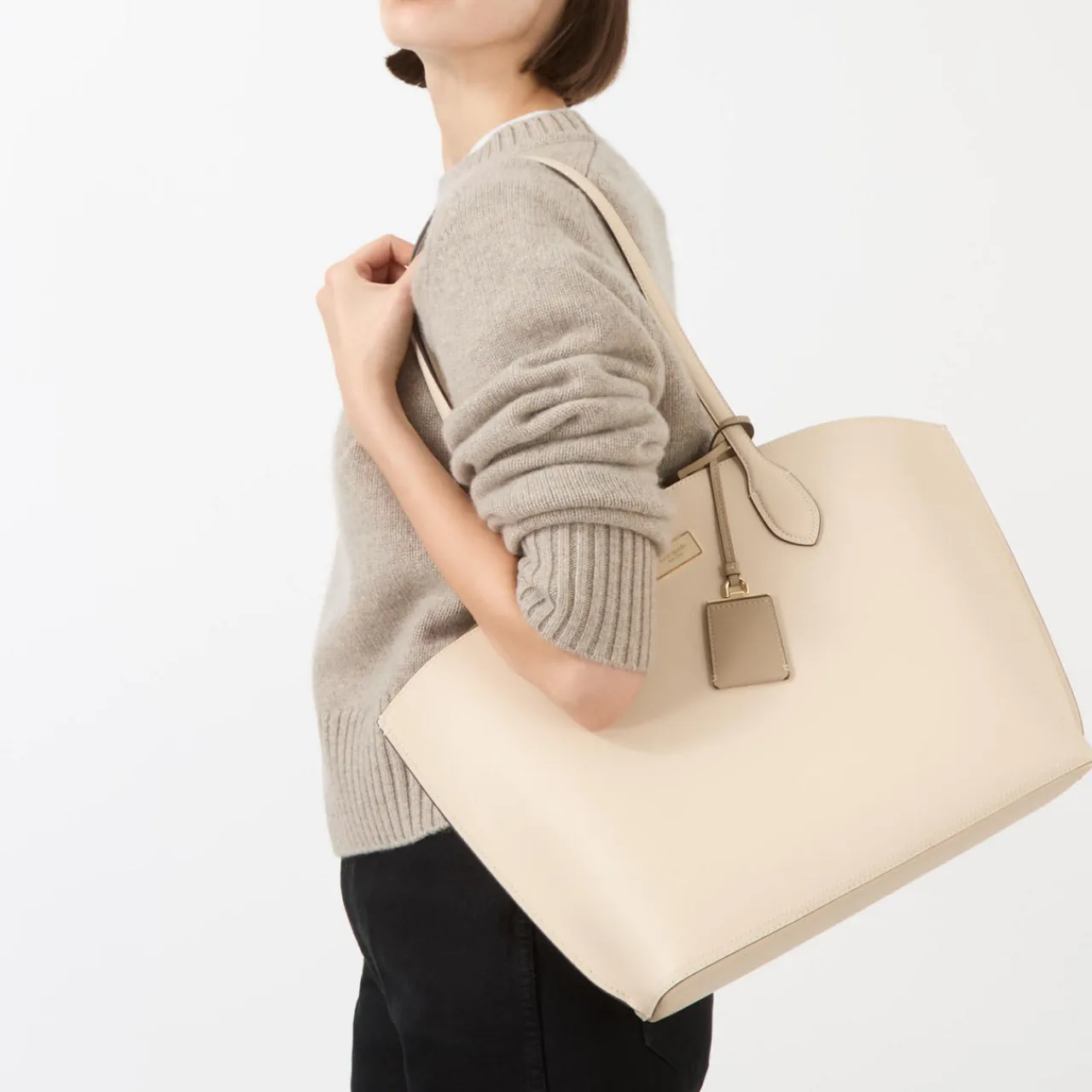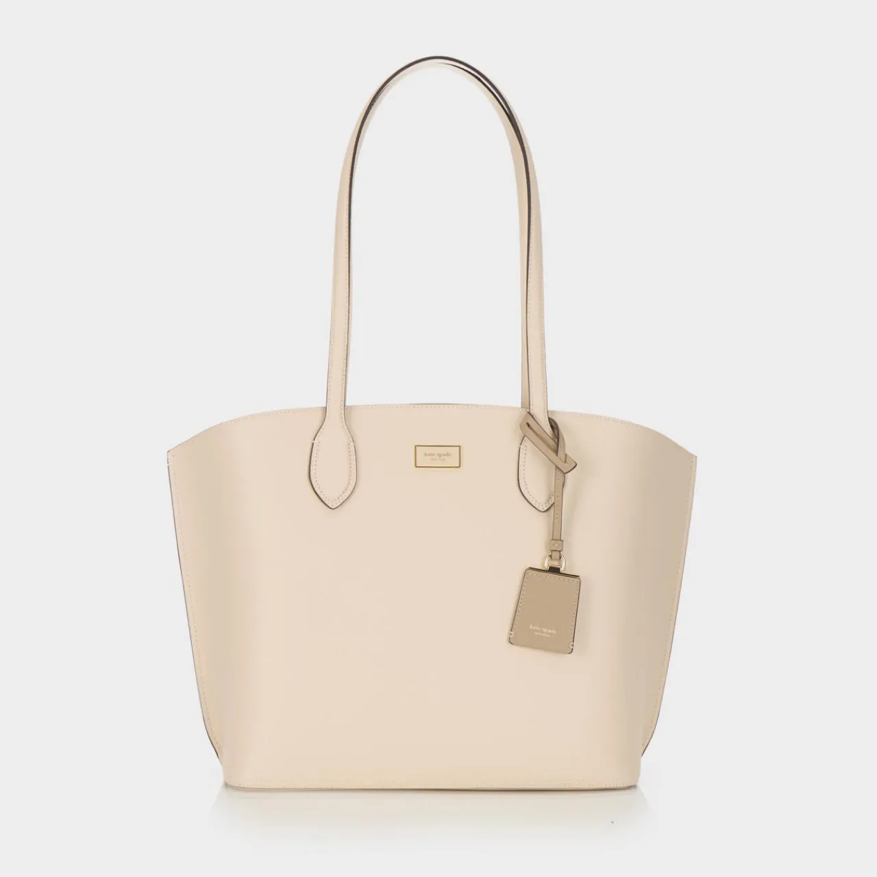 - Internal pouch, top handles, open top, luggage charm, logo detail, snap button fastening