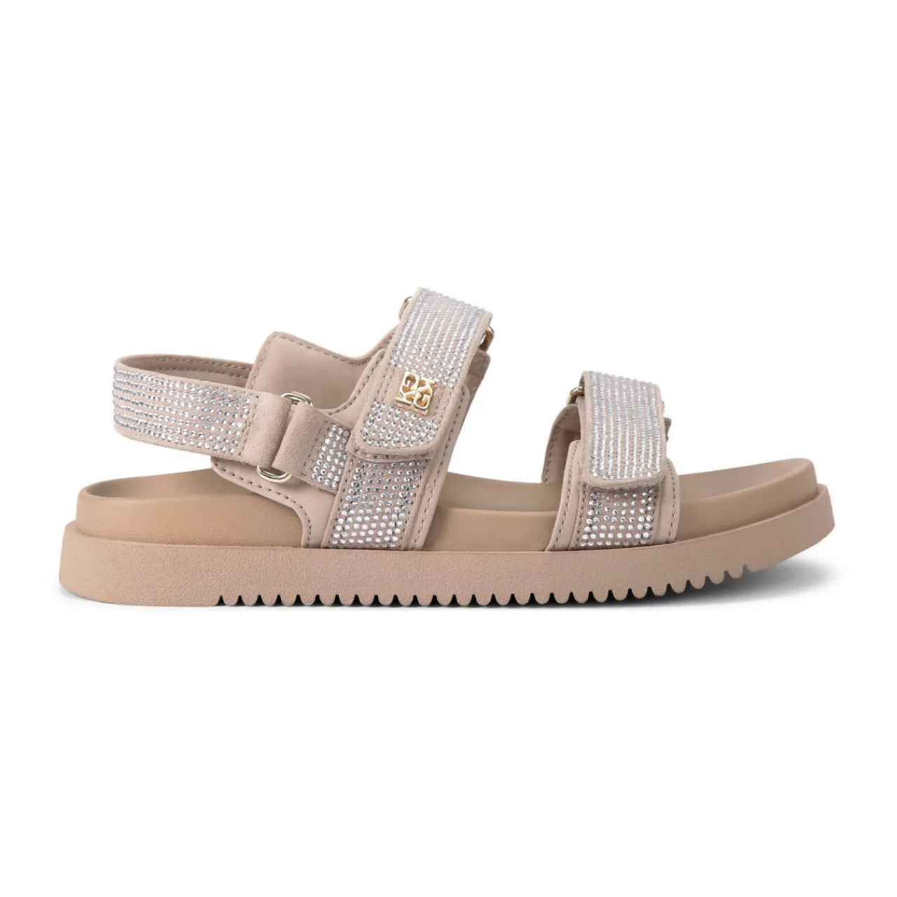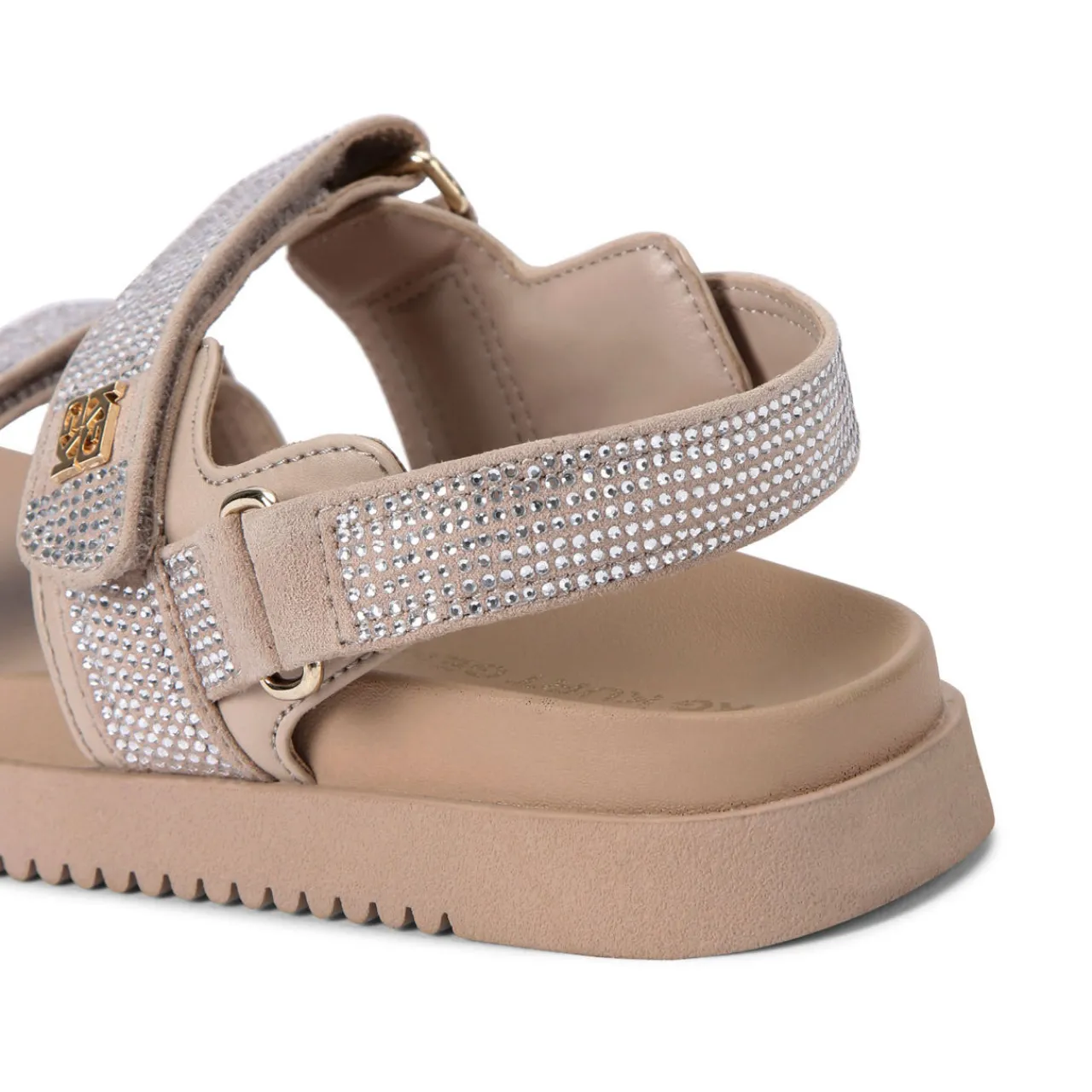 - Embellished with silver crystals, hook and loop fastening straps, gold-tone KG stud on the upper strap