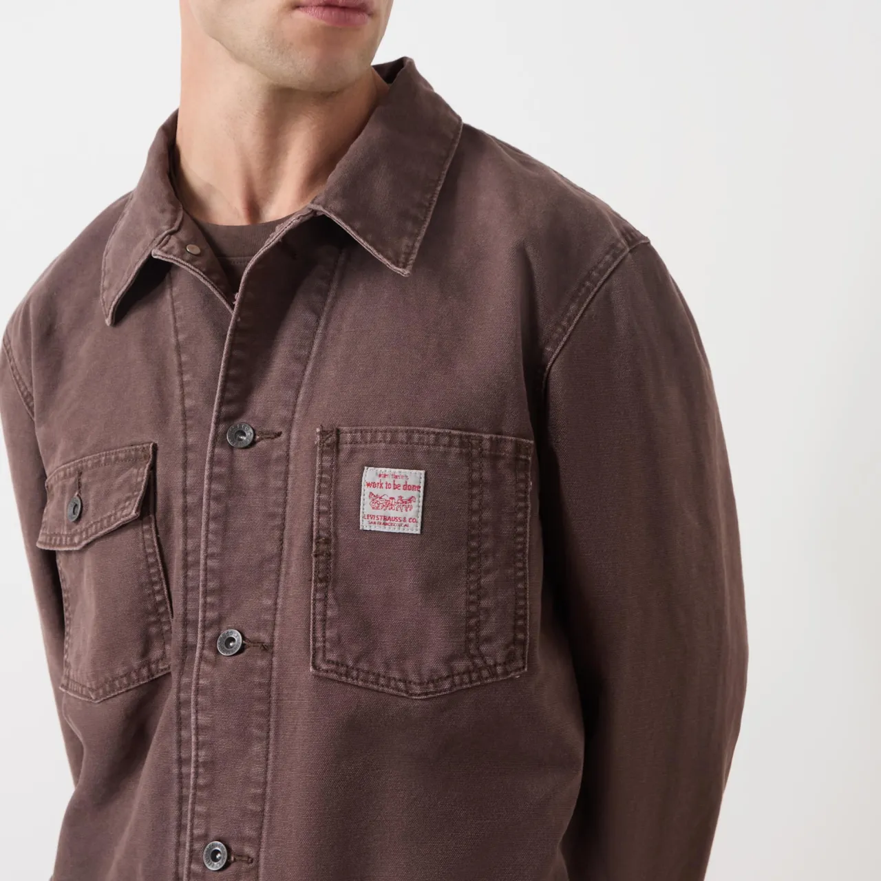 - Pointed collar, long sleeves, metal button fastenings, dropped shoulders, four-pocket design, logo patch, single-button cuffs, tonal stitching