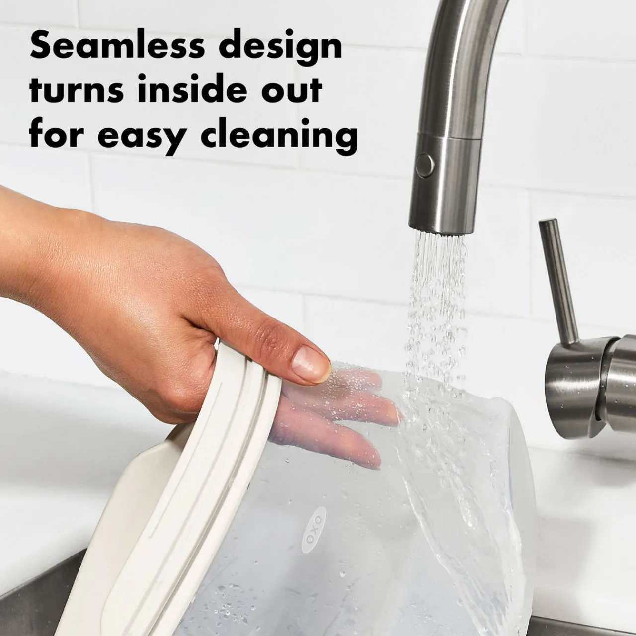 - Flat size, easy to stack for compact storage, seamless construction, durable, can easily be turned inside out for thorough cleaning, dust-resistant finish to repel dust and debris, secure closure to keep food fresh and prevent leaks, generous-sized tab for easy opening and closing, microwave safe