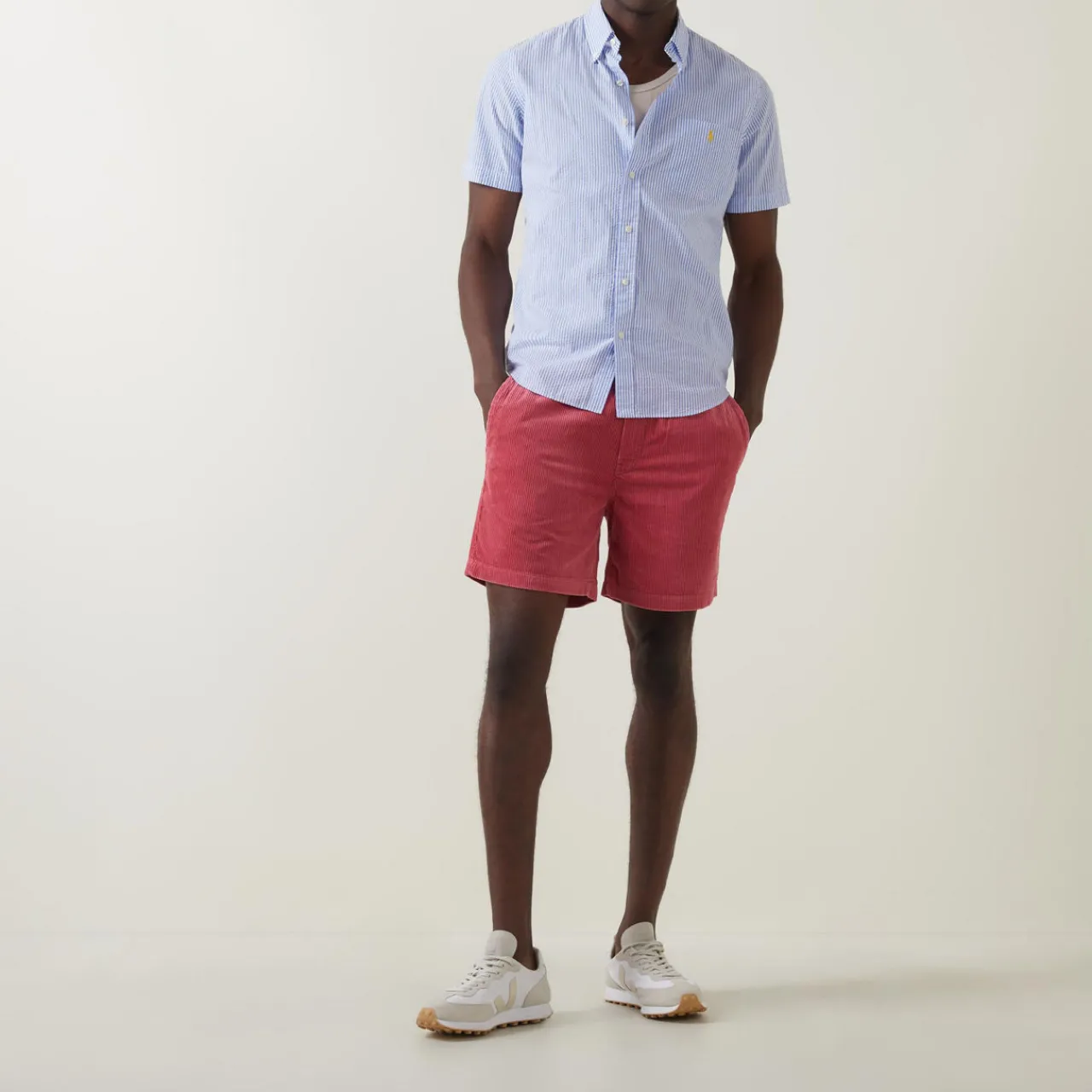 - Corduroy texture, elasticated waist, side pockets, drawstring fastenings, logo detail