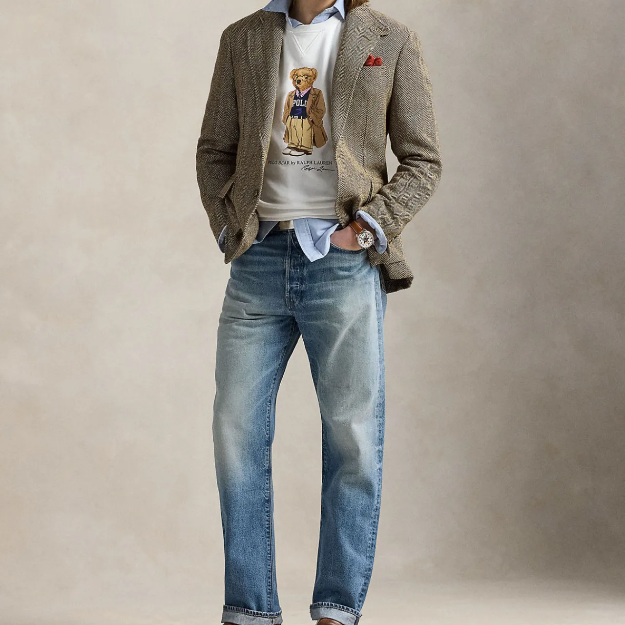 - Crew neck, long sleeves with ribbed cuffs, polo bear print at the centre front, ribbed hem, “Polo Bear by Ralph Lauren” and “Ralph Lauren” script print
