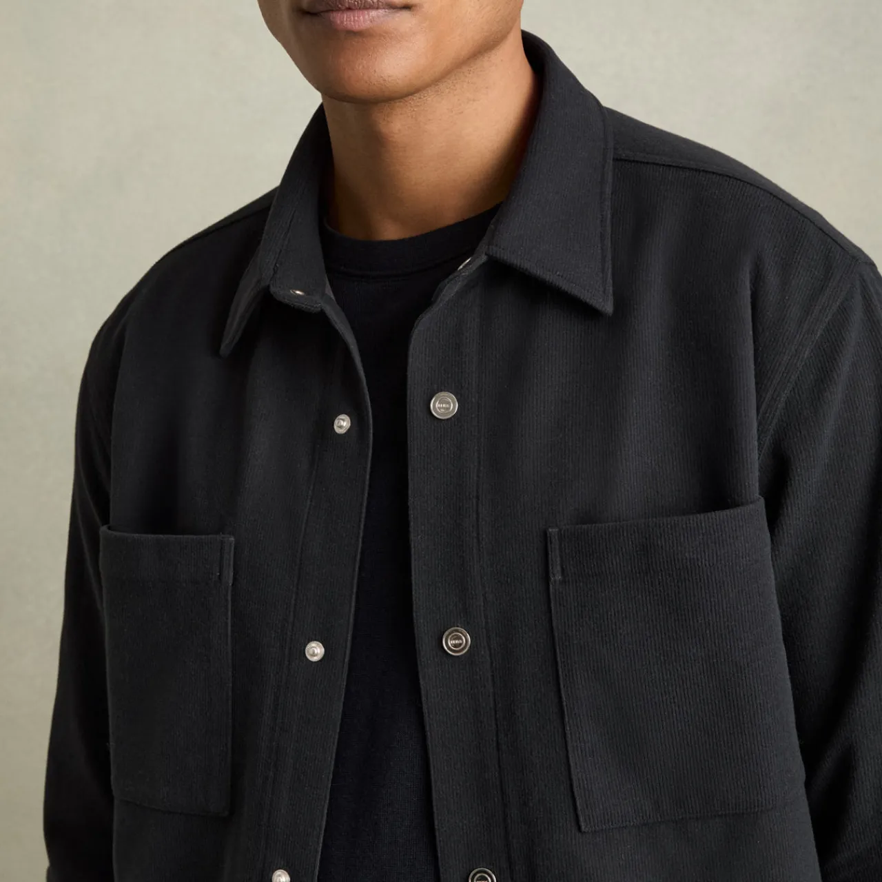 - Brushed corduroy fabric, chest patch pockets, press-studs fastenings, classic collar, press-stud cuffs, long sleeves