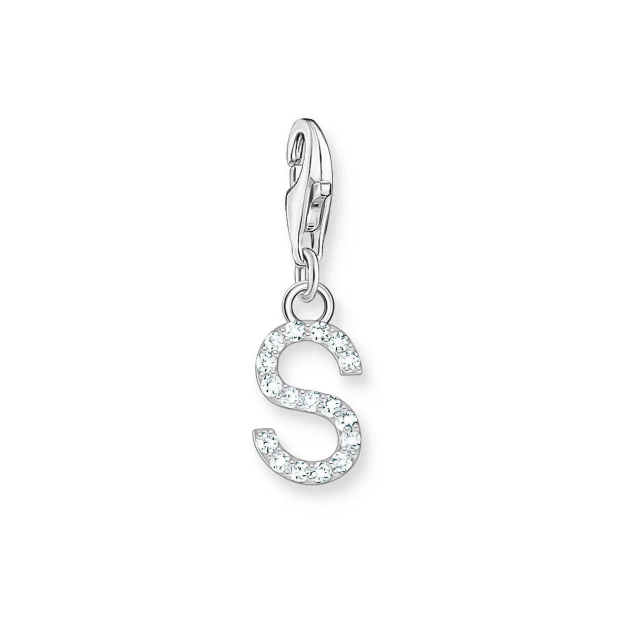 - Sparkling letter charm, zirconia stone embellishment, hand-set in a pavé setting, carabiner clasp fastening