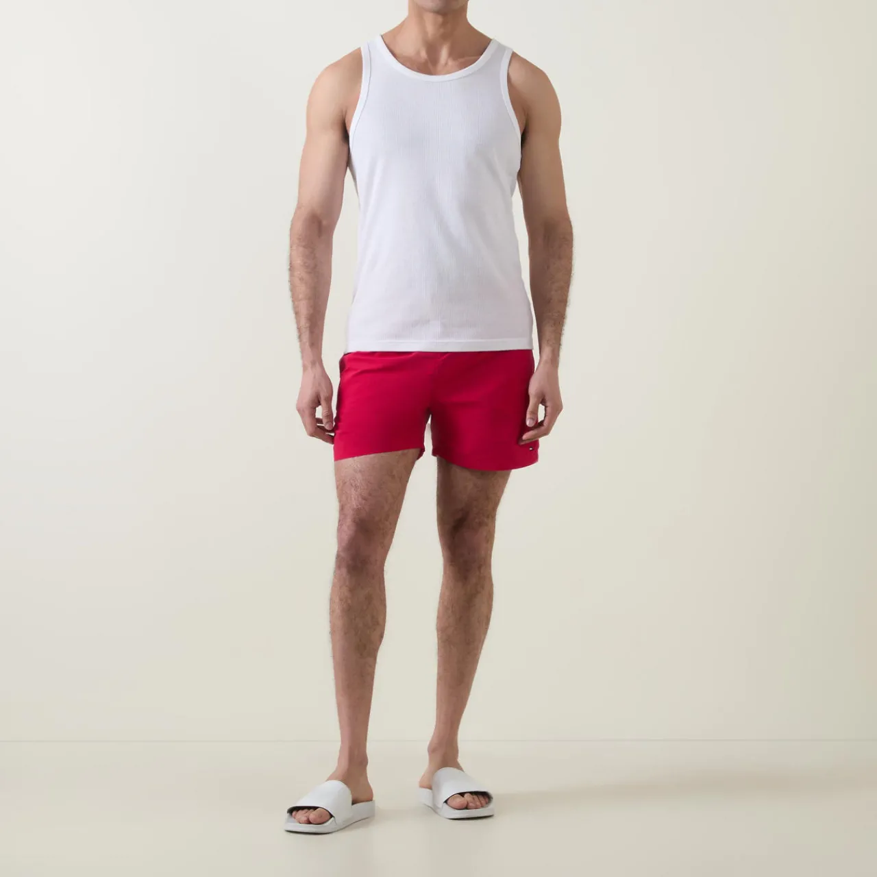 - Logo detail, elasticated waist, drawstring fastenings, mid-length