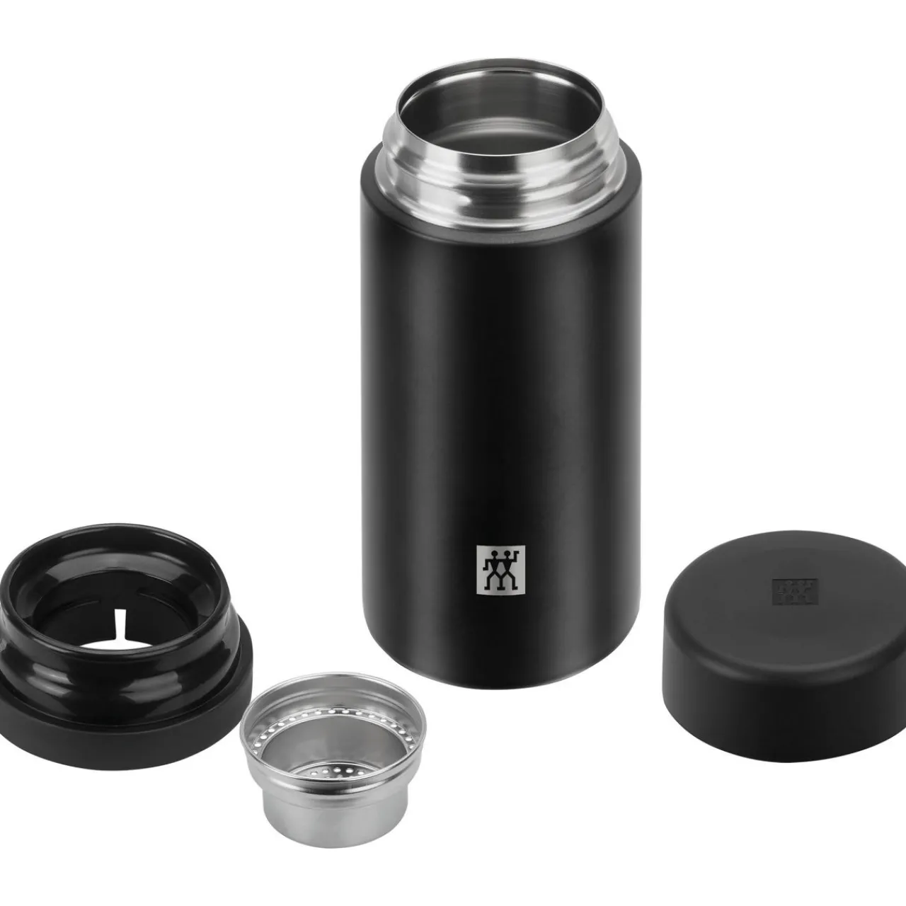 - Keeps drinks hot for up to 7 hours and cold for up to 10 hours, minimalistic and functional design, leak-proof, BPA-free materials, built-in filter, non-slip base for greater stability, ideal for sport and leisure, matt black finish, brand logo details