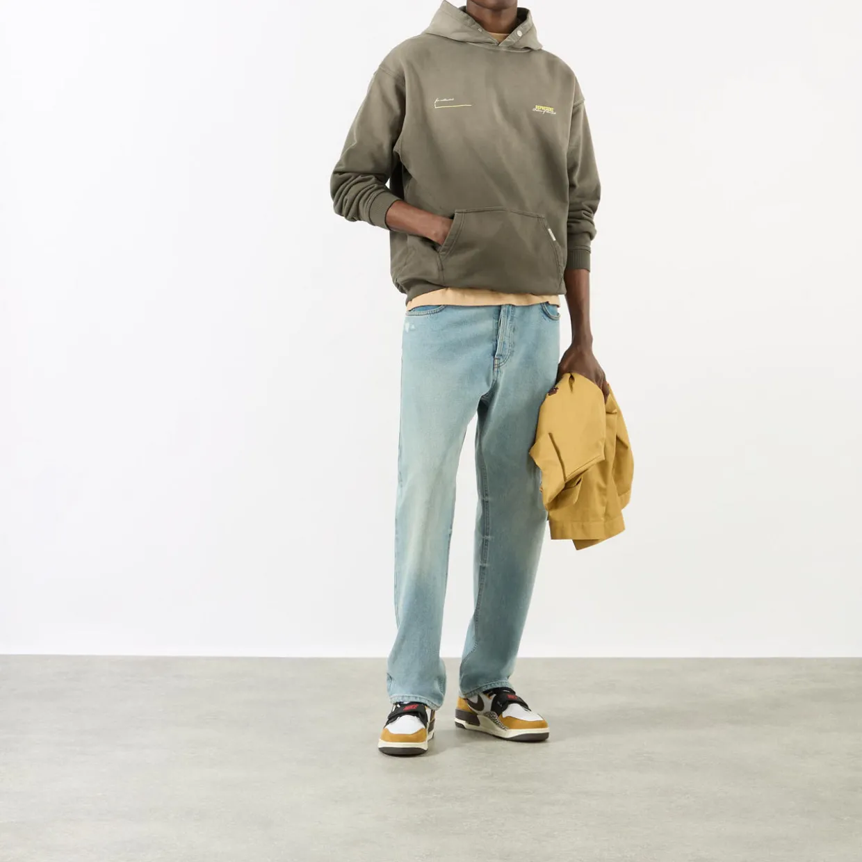 - Faded wash, hood, long sleeves, screen-printed logo, kangaroo pocket