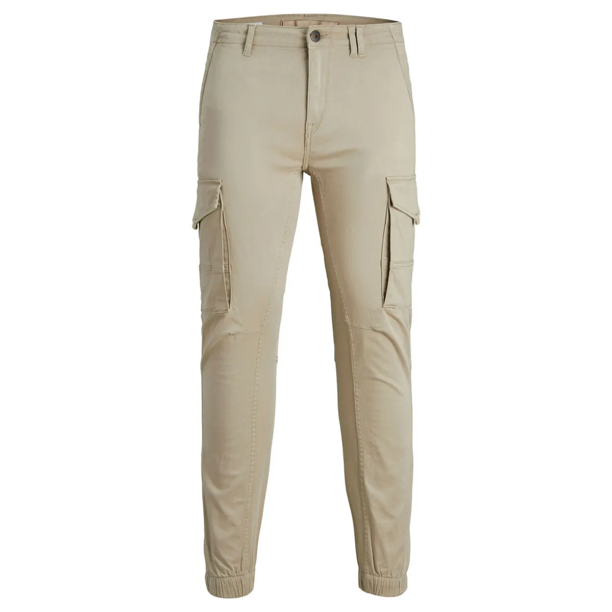- Zip-fly and button fastening, belt loops, side slit pockets, rear flap pockets, cargo flap pockets on each side of leg, smooth fabric