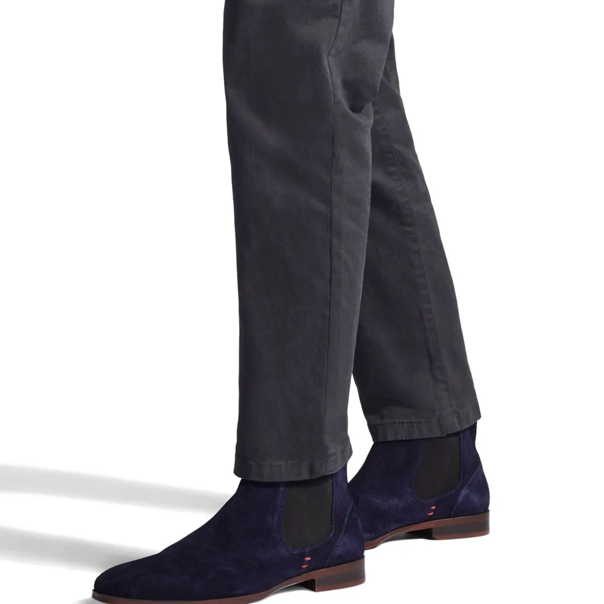 - Almond-shape toe, pull-on style, elasticated side panels, branded pull tab at heel, suede finish