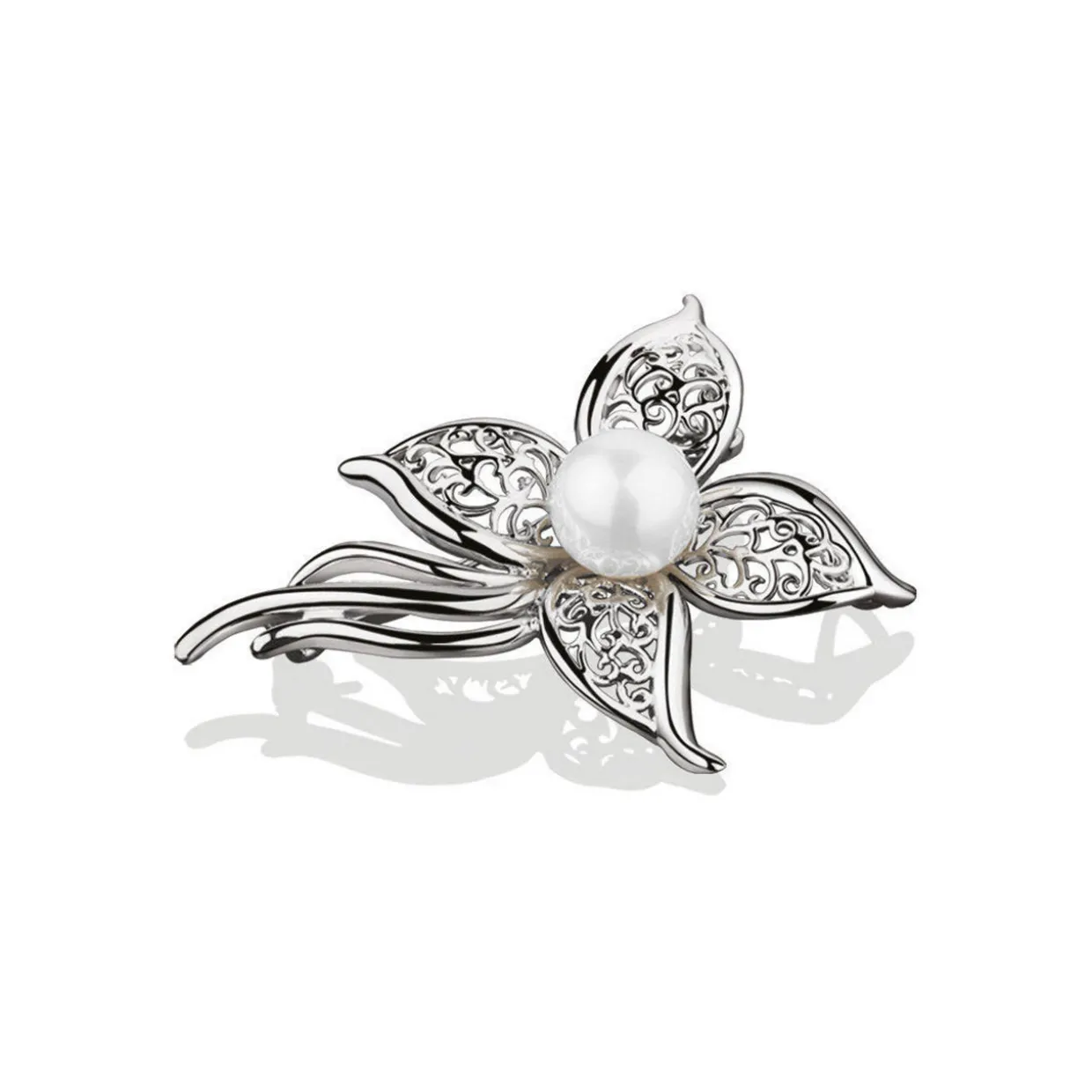 - Vintage look, pin closure, floral shape, pearl detailing, presented in signature Newbridge Silverware gift box
