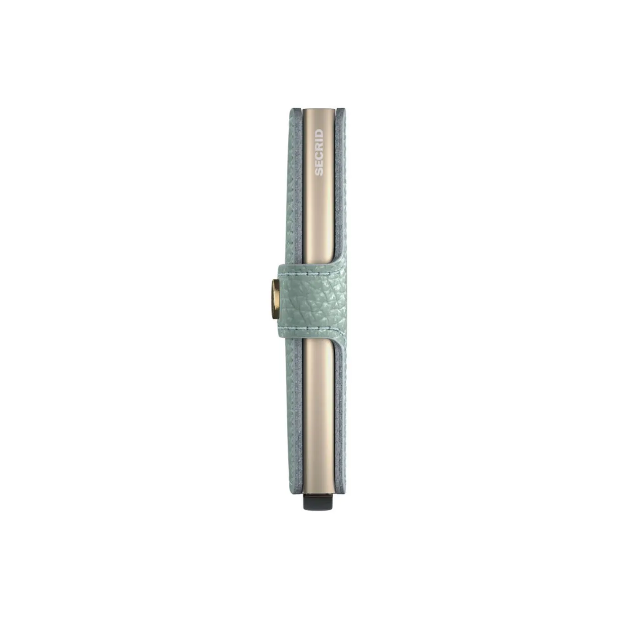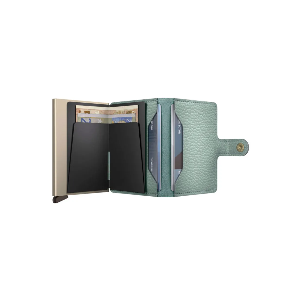 - Compact size, aluminium Cardprotector, slide mechanism, pebble leather finish, snap button fastening, brand logo detail