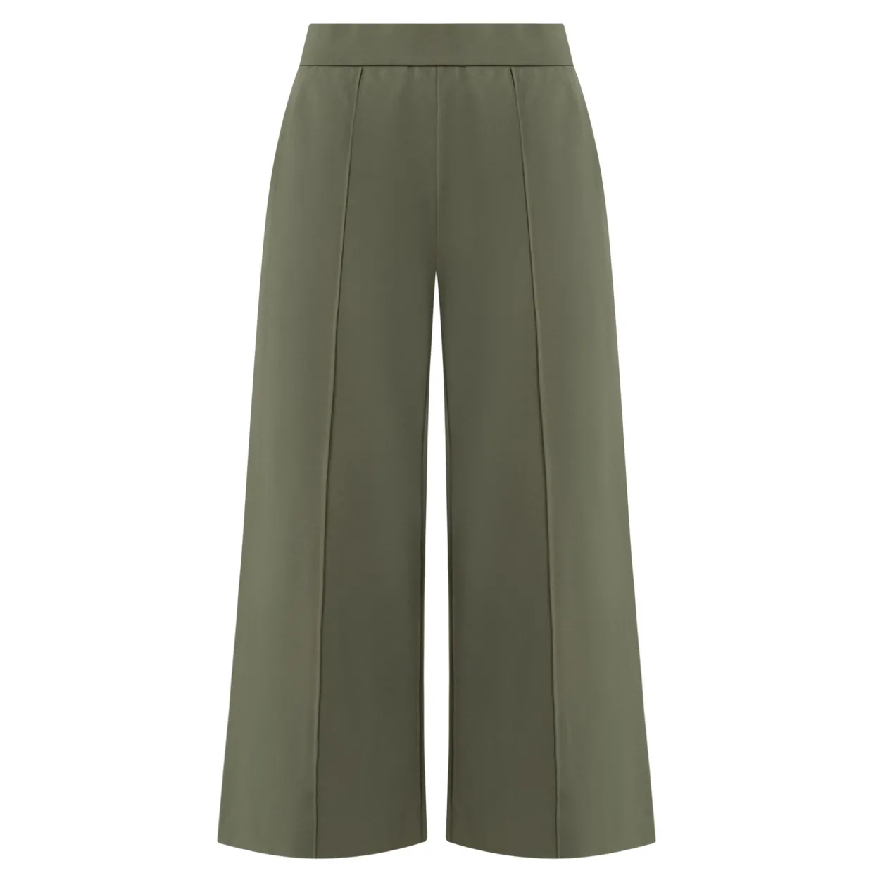 - Elasticated waistband, raised seams, wide-cut leg, side entry pockets