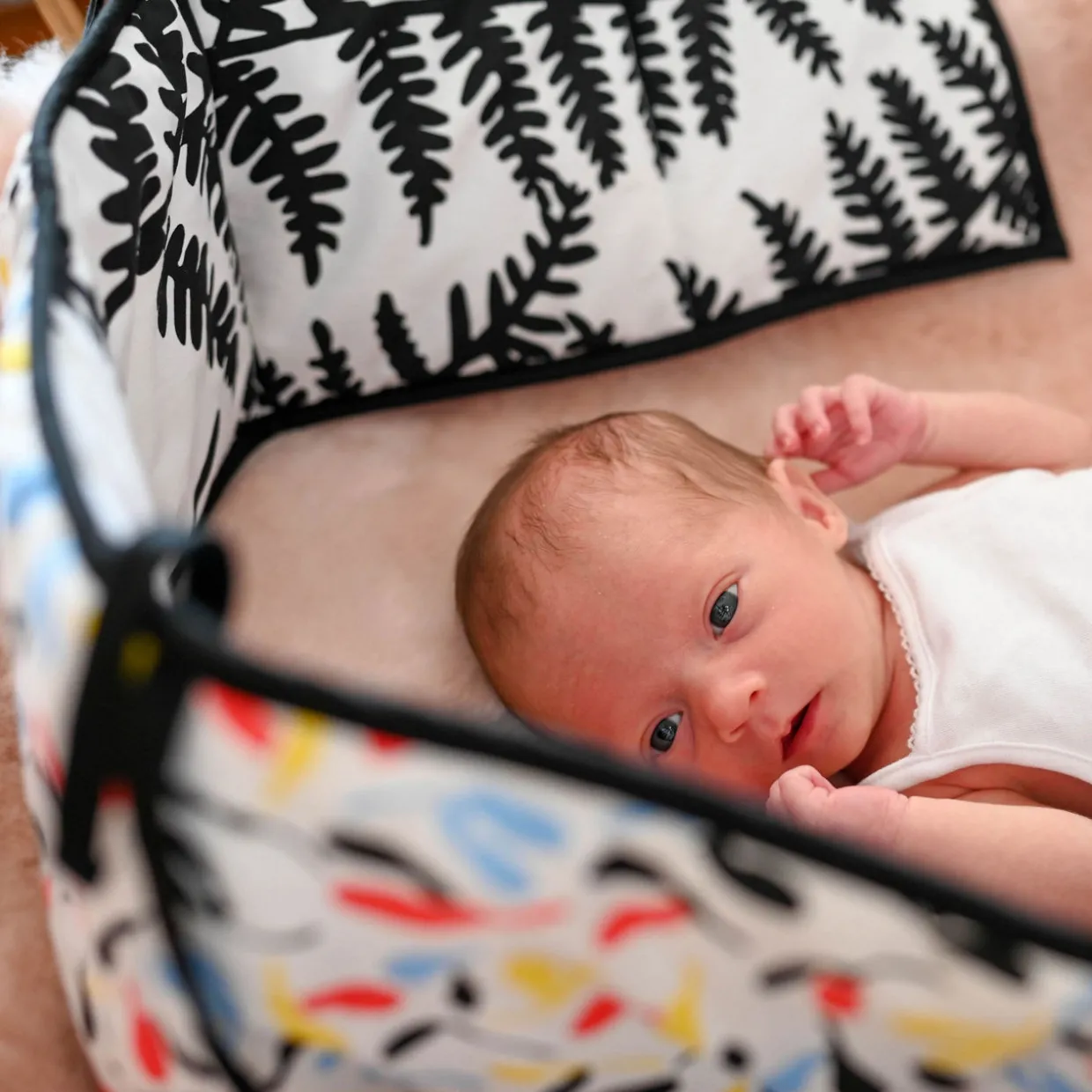 - One sensory strip, reversible, ‘Fern’ print side (newborn-4 month print), ‘Sycamore’ print side (5+ months), soft feel, comfy padded fill