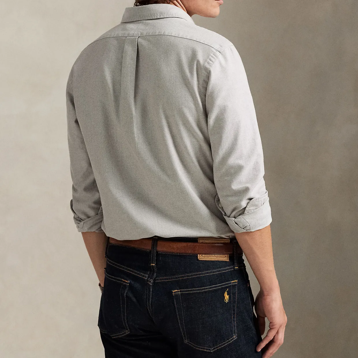- Button-down point collar, buttoned placket, long sleeves with buttoned barrel cuffs, split back yoke with a box pleat ensures a comfortable fit and a greater range of motion, signature embroidered pony at the left chest