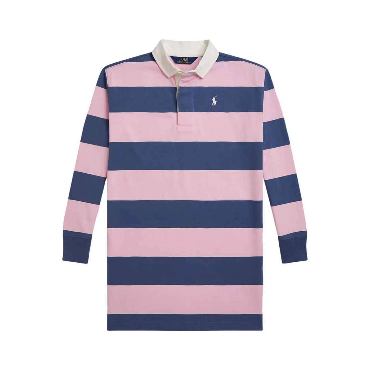- Jersey fabric, rugby-inspired details, bold stripes, twill collar, signature embroidered Pony logo, twill rugby collar, three-button rugby placket, rubber-finished buttons, long dropped-shoulder sleeves, ribbed cuffs, vented hem
