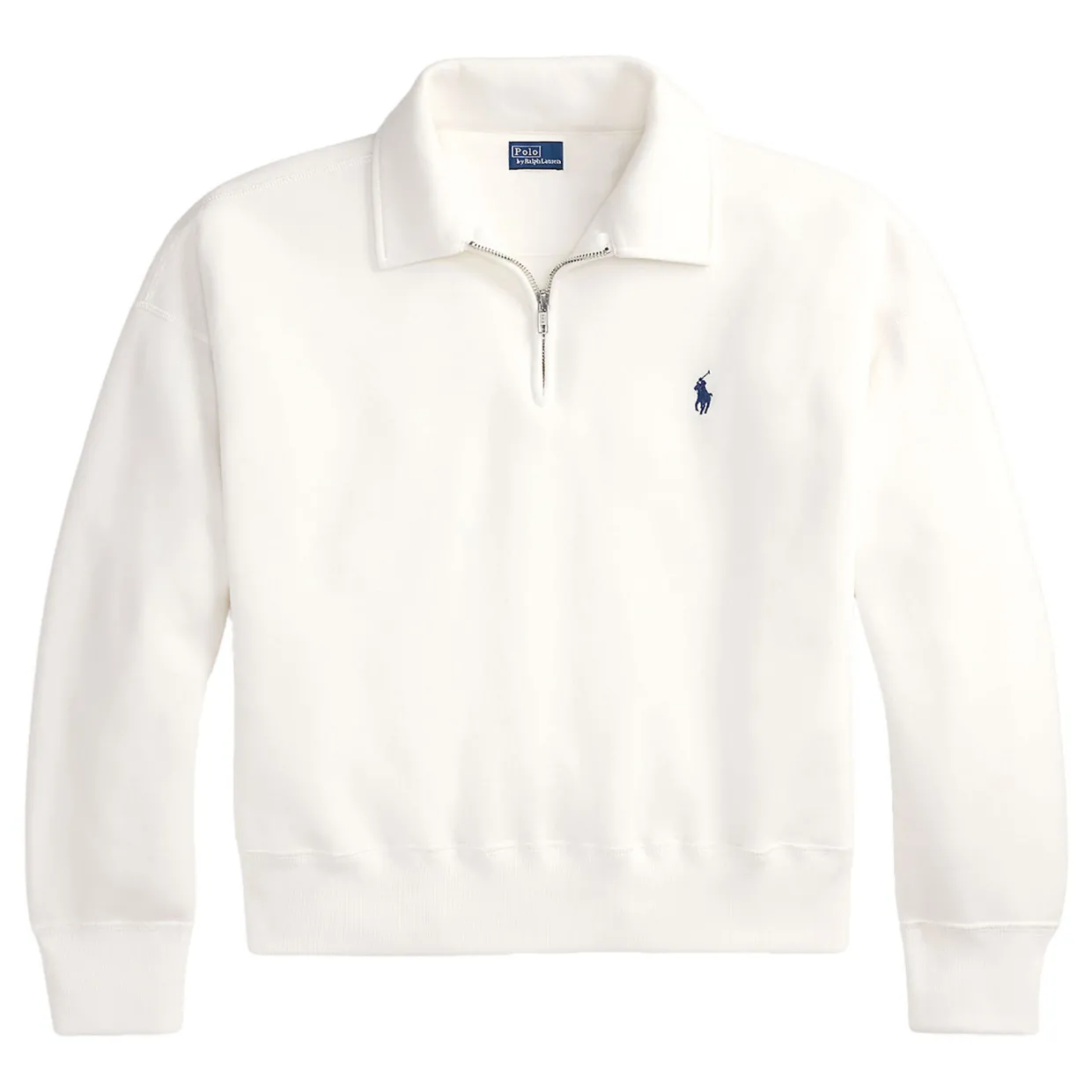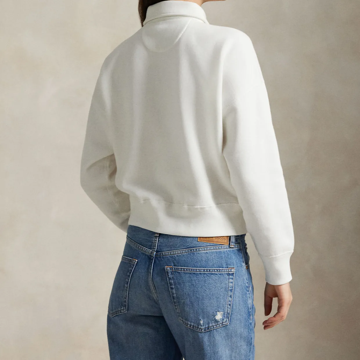 - Spread collar, quarter-zip placket, long sleeves with rib-knit cuffs, signature embroidered pony at the left chest, rib-knit hem, garment-washed for softness
