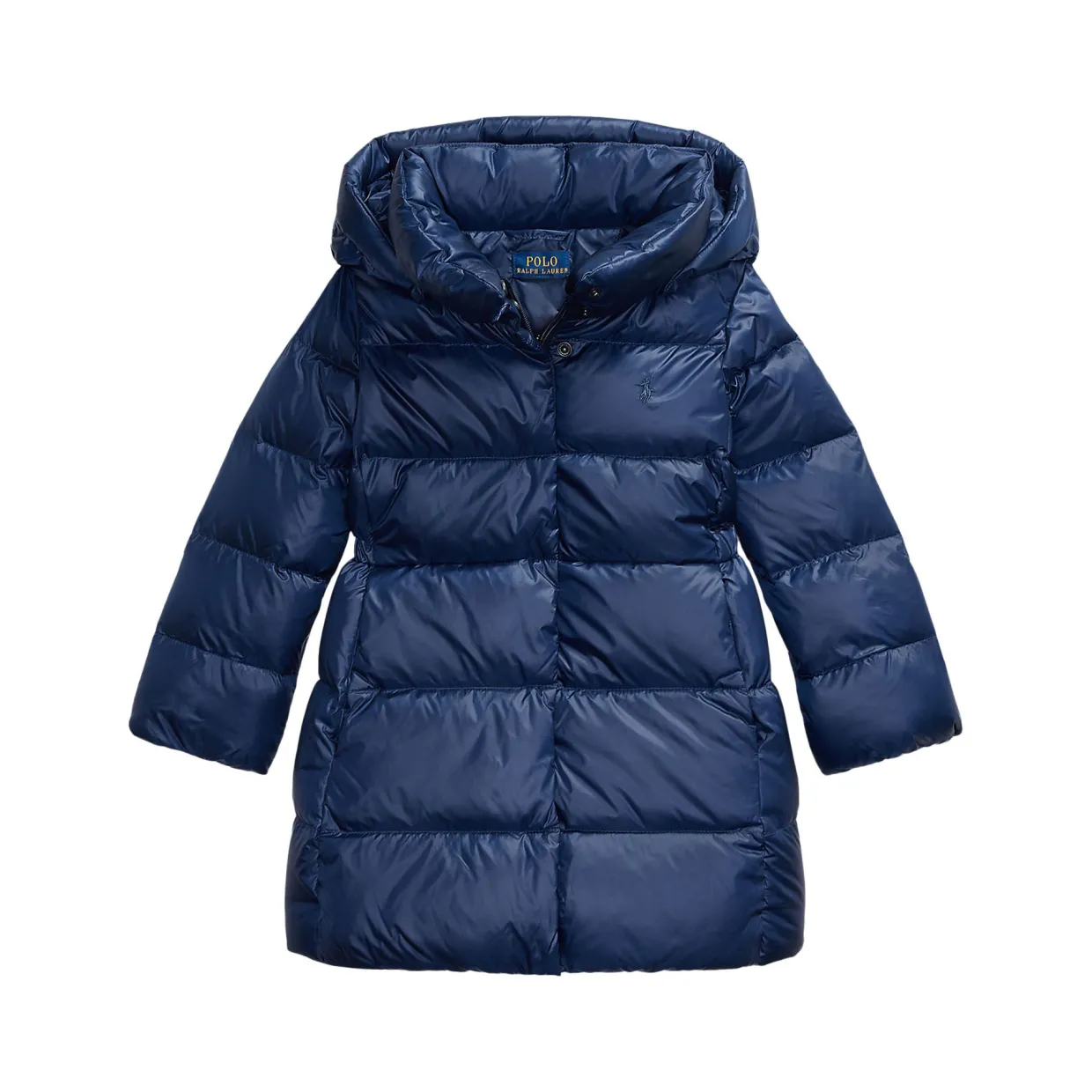 - Water-repellent shell, 650 fill power down, longer silhouette, signature embroidered pony at the left chest, mockneck, snap-off hood, full-zip front, snapped storm placket, long sleeves with elasticised cuffs, princess seams at the front, elasticised waist, side on-seam snapped pockets, elasticised hem, signature name tag label at the interior, fully lined and filled