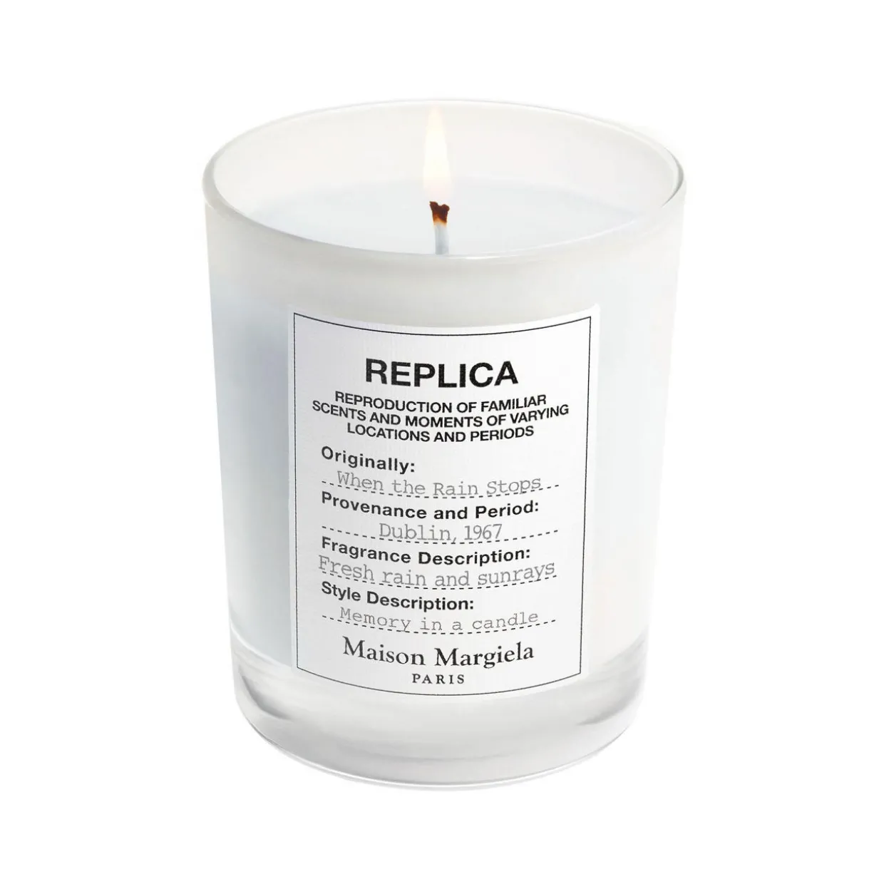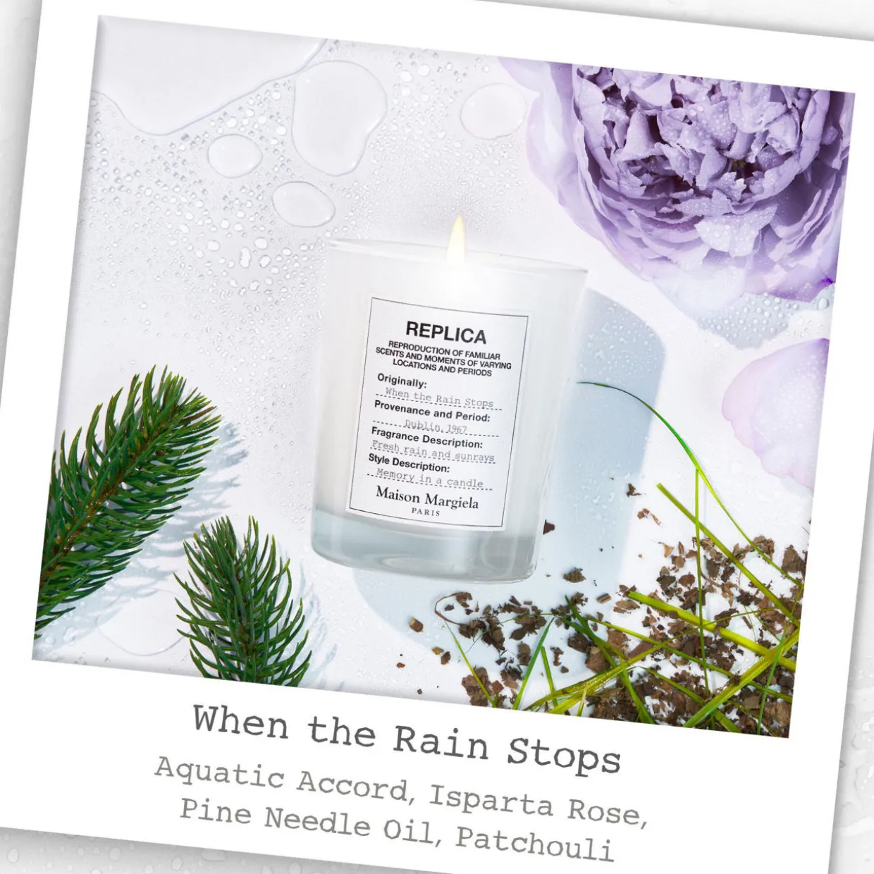 The When The Rain Stops candle evokes the memory of a passing rain shower in the middle of spring. Suddenly, the sky calms down, and clouds disappear giving way to shy sun rays and the hint of a rainbow. The only things left are dew droplets on leaves, reflections in puddles, and the fresh smell of rain.