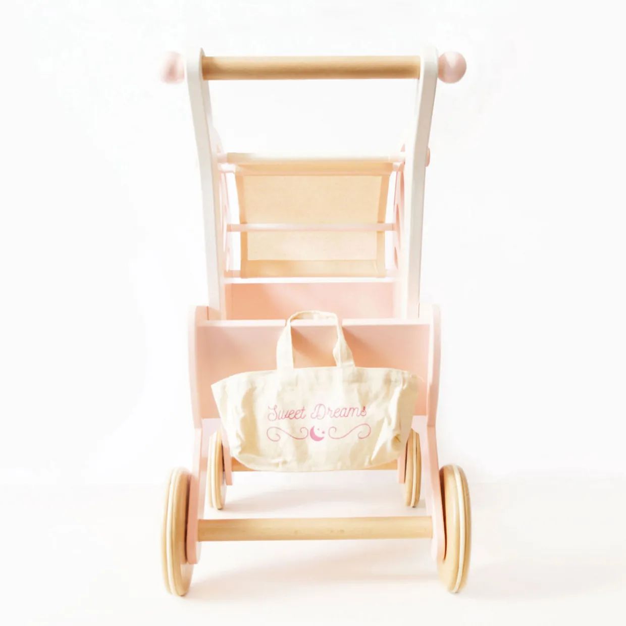 - Includes one doll pram, one pram cushion, one cotton bag