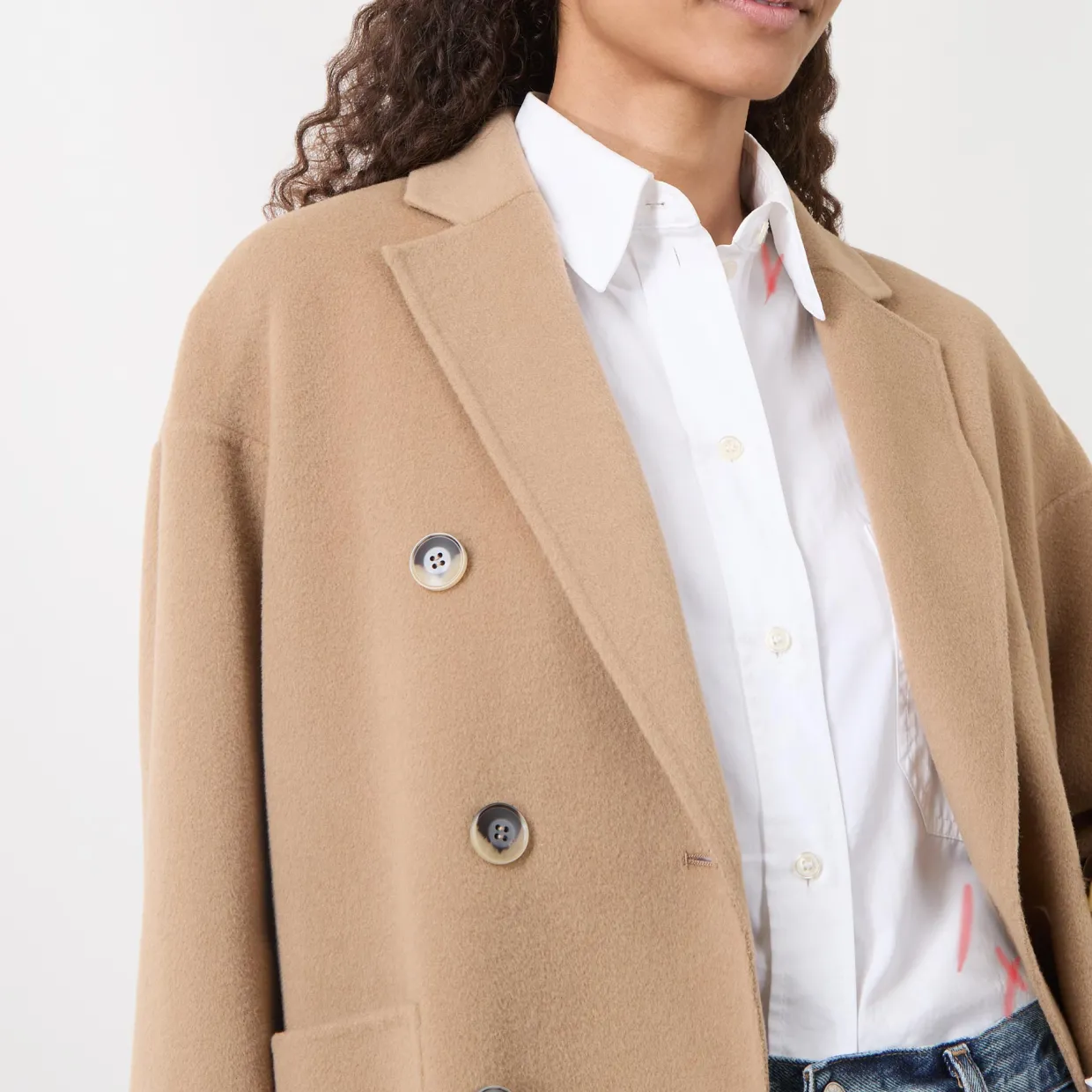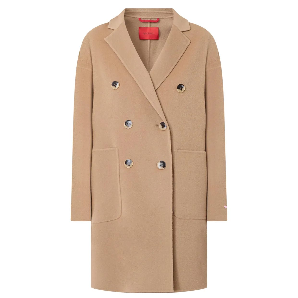 - Double-breasted, long sleeves, button fastenings, slip pockets, notched lapels