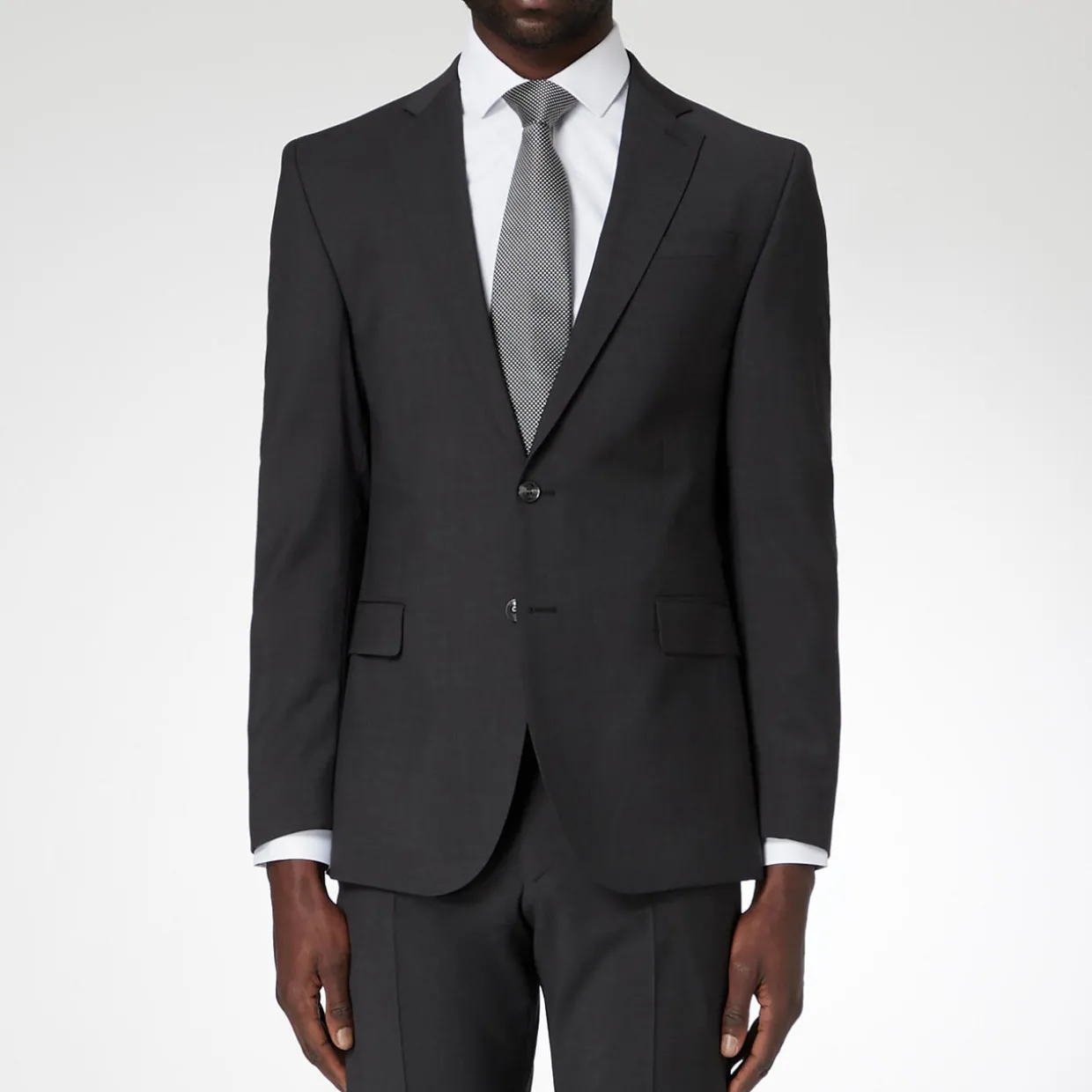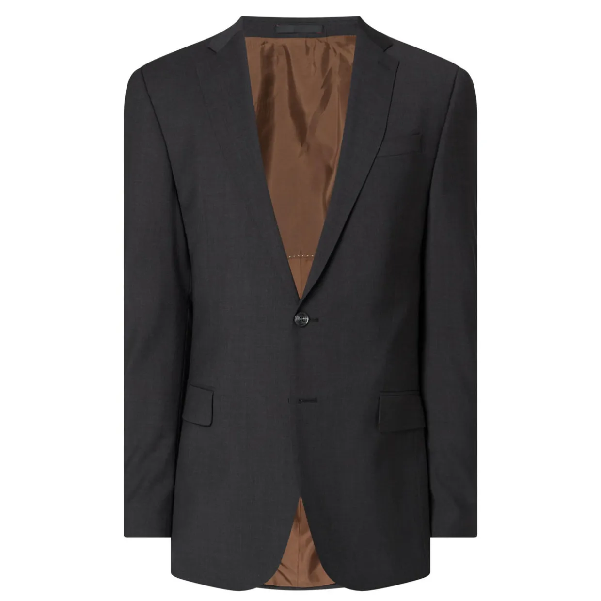 - Single-breasted, padded shoulders, notched lapels, welt pockets, fully lined.