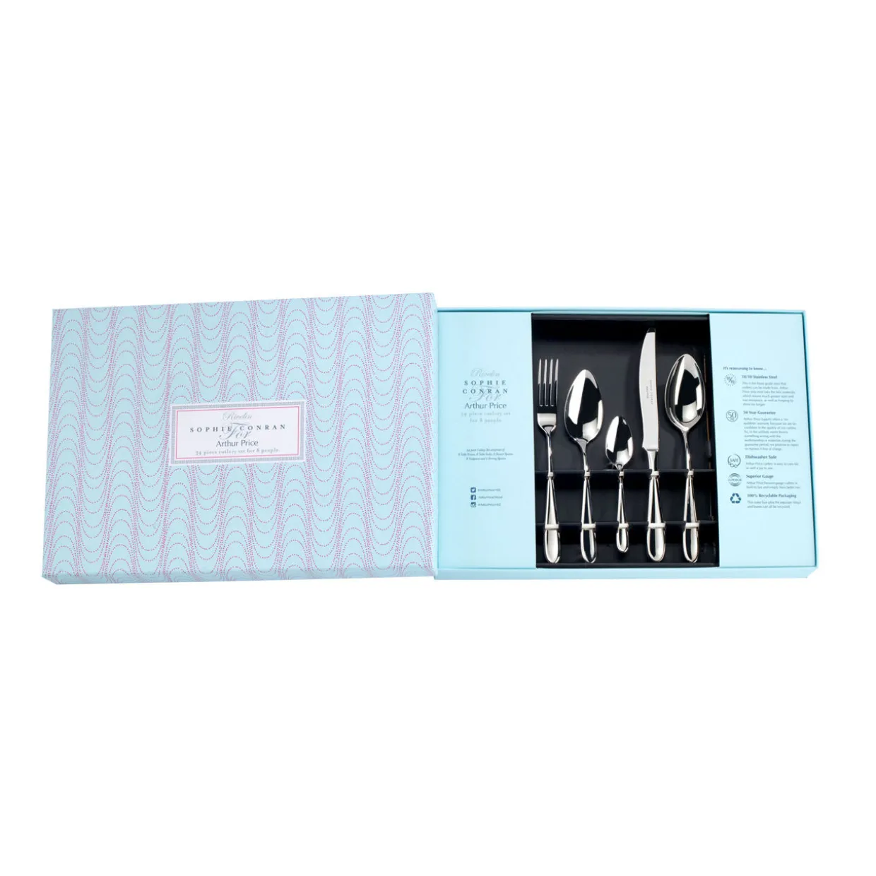 - Includes: 8 x Table Knife, 8 x Table Fork, 8 x Dessert Spoon, 8 x Teaspoons, 2 x Serving Spoon