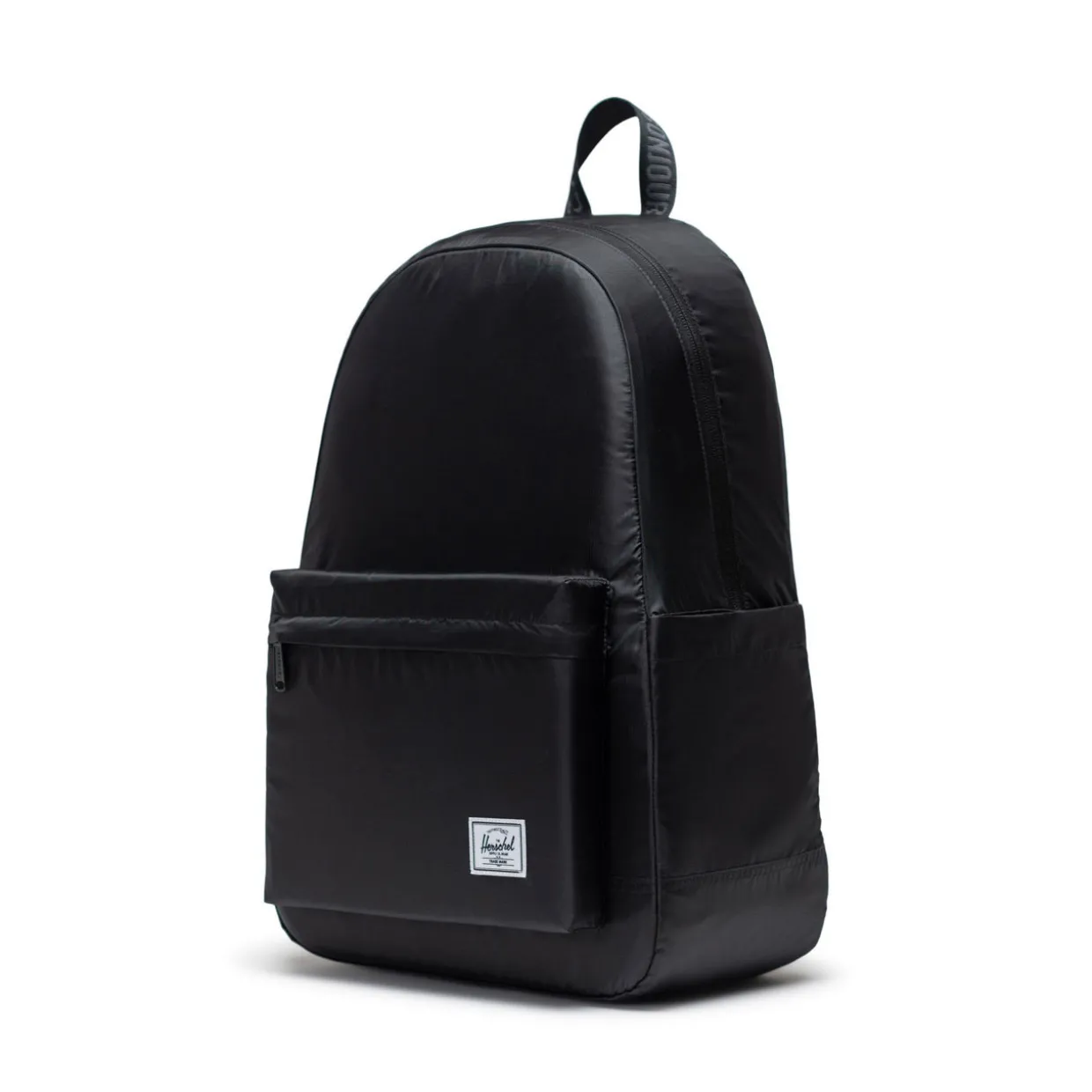 - Packable design, folds into an internal pocket for easy storage, EcoSystem™ 70D Ripstop Fabric, top zip fastenings, adjustable smooth webbing shoulder straps, rear luggage trolley strap, front zipped pocket, dual water bottle pockets, internal hanging pocket doubles as a self-storage pouch, snap-down loop for easy hanging, “Hello” jacquard webbing, brand logo details