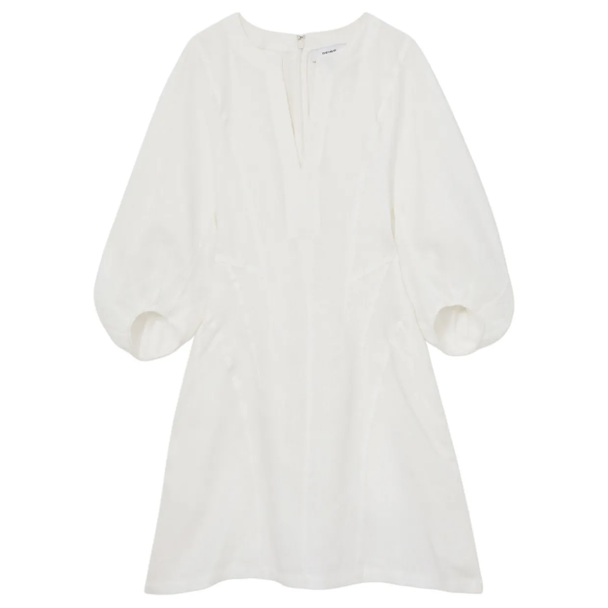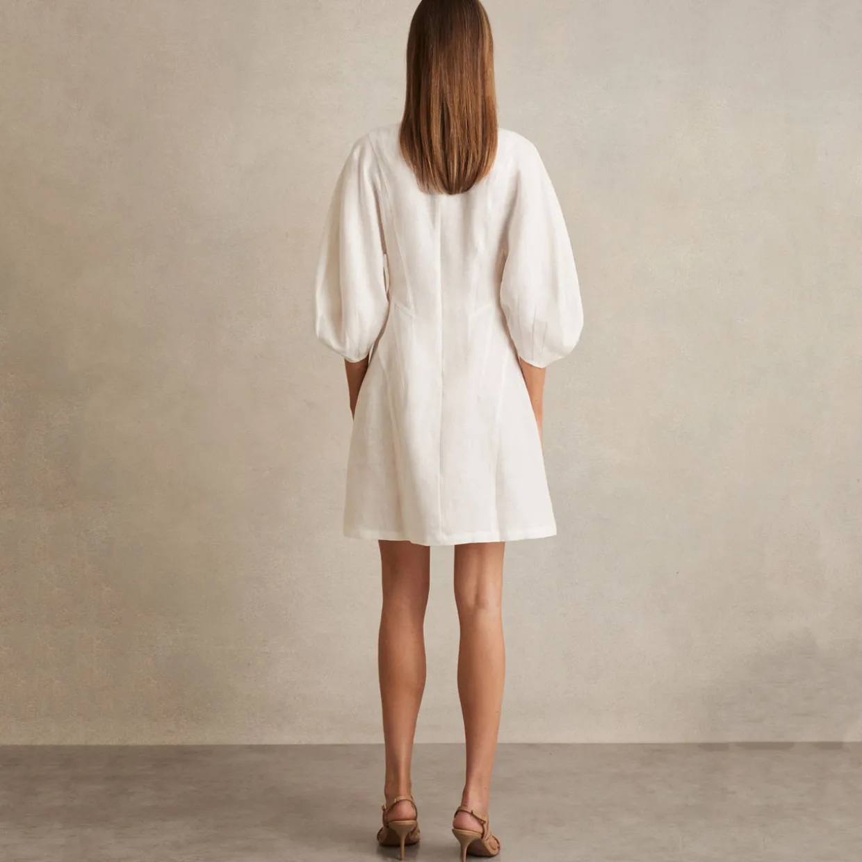 - Notched neckline, three-quarter balloon sleeves, side slip pockets, concealed zip to reverse, belt not included