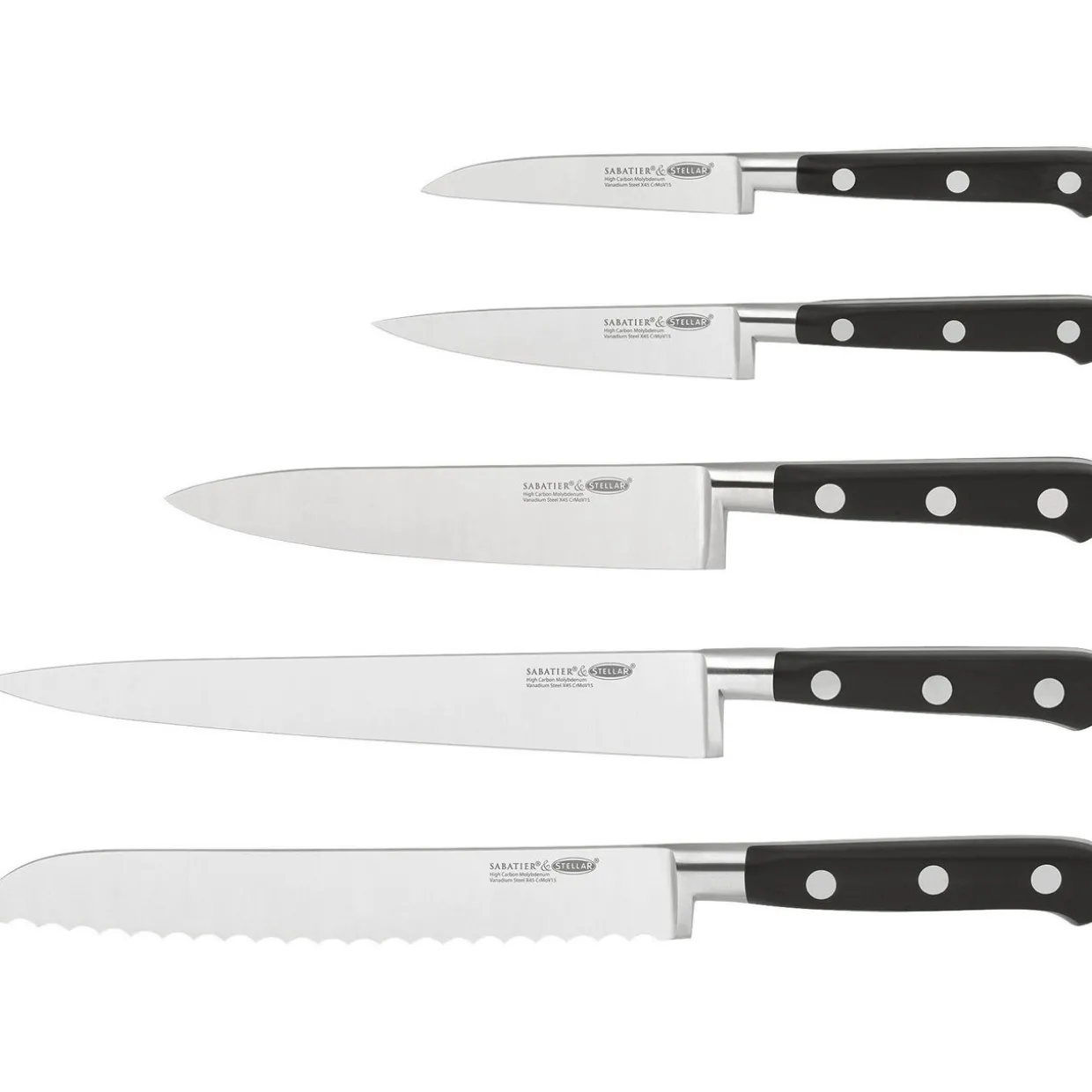 - Each knife is forged from professional-grade stainless steel for superb performance, secure spun solid handle rivets