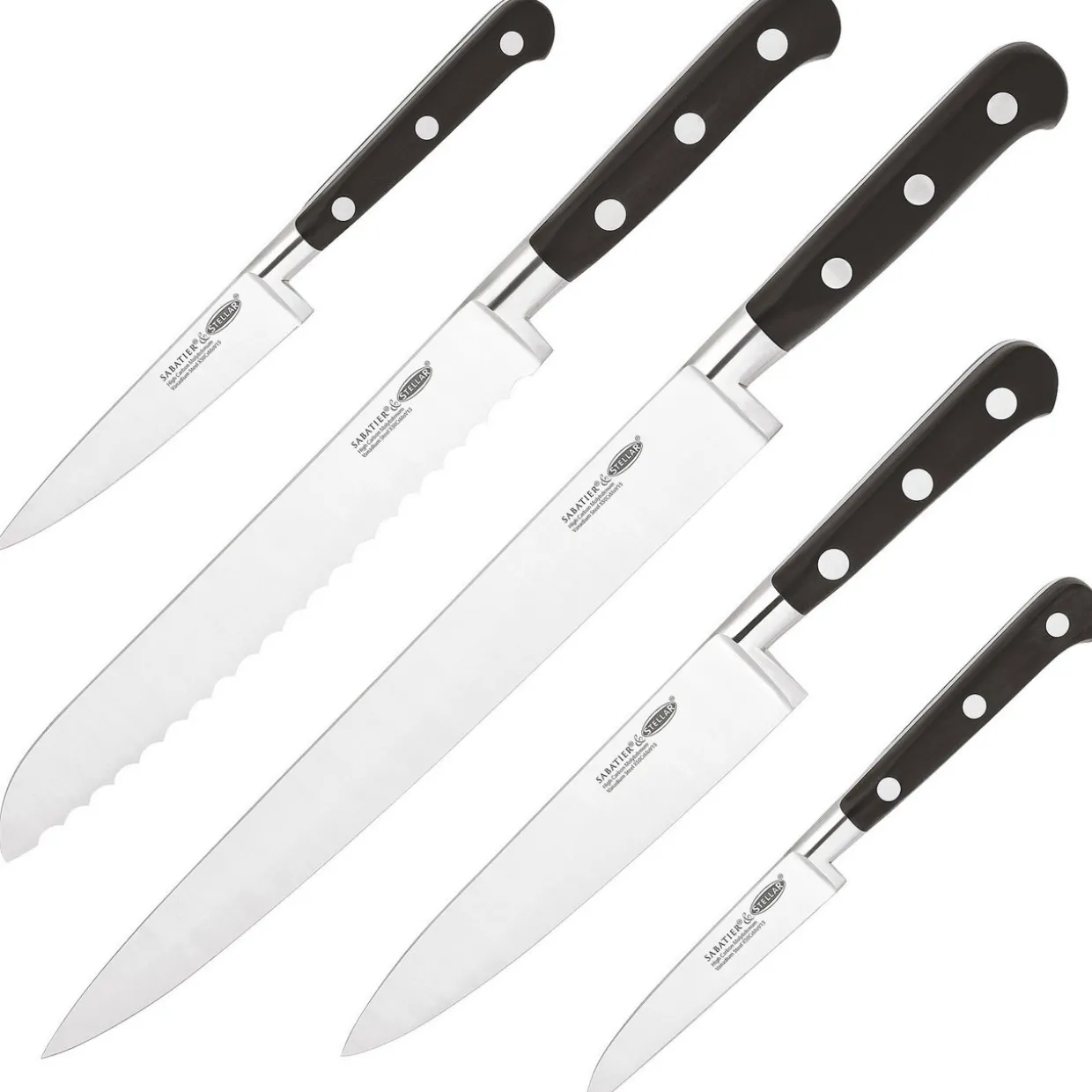 - Each knife is forged from professional-grade stainless steel for superb performance, secure spun solid handle rivets