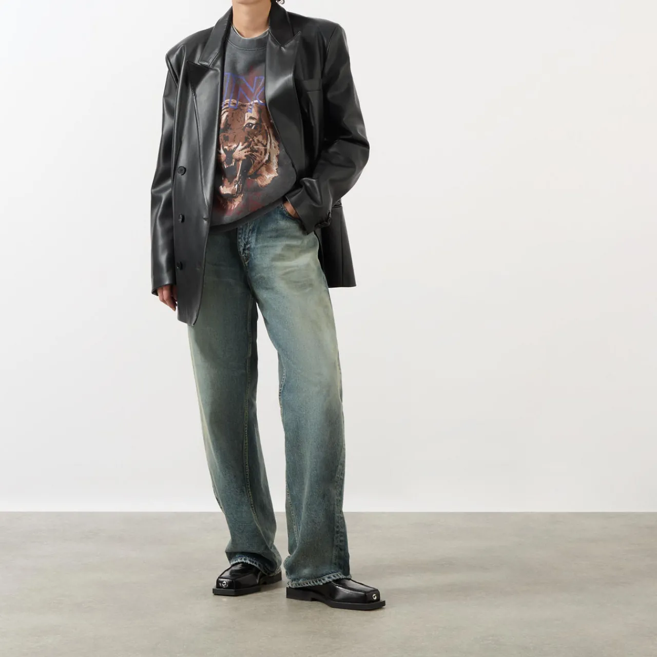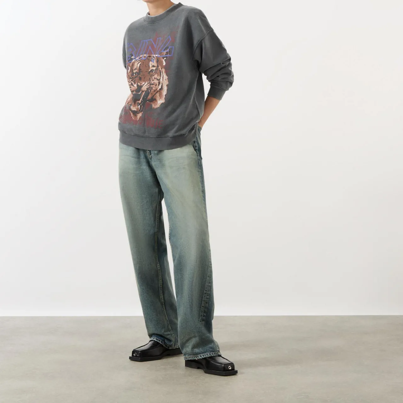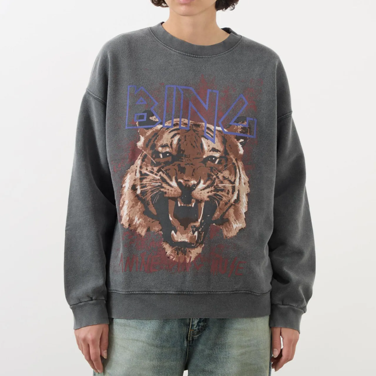 - Tiger print, boxy fit, crew neckline, washed.